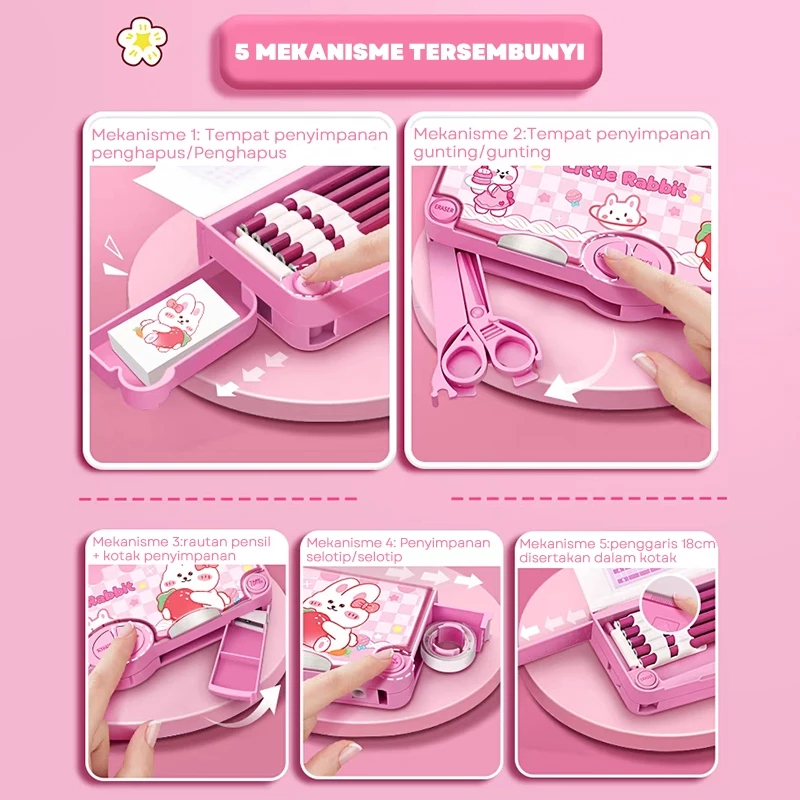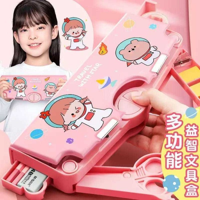 N202 Kotak Pensil Anak Multifungsi Lengkap Penghapus Rautan Gunting Isolasi Penggaris Rautan Tempat Pensil Karakter