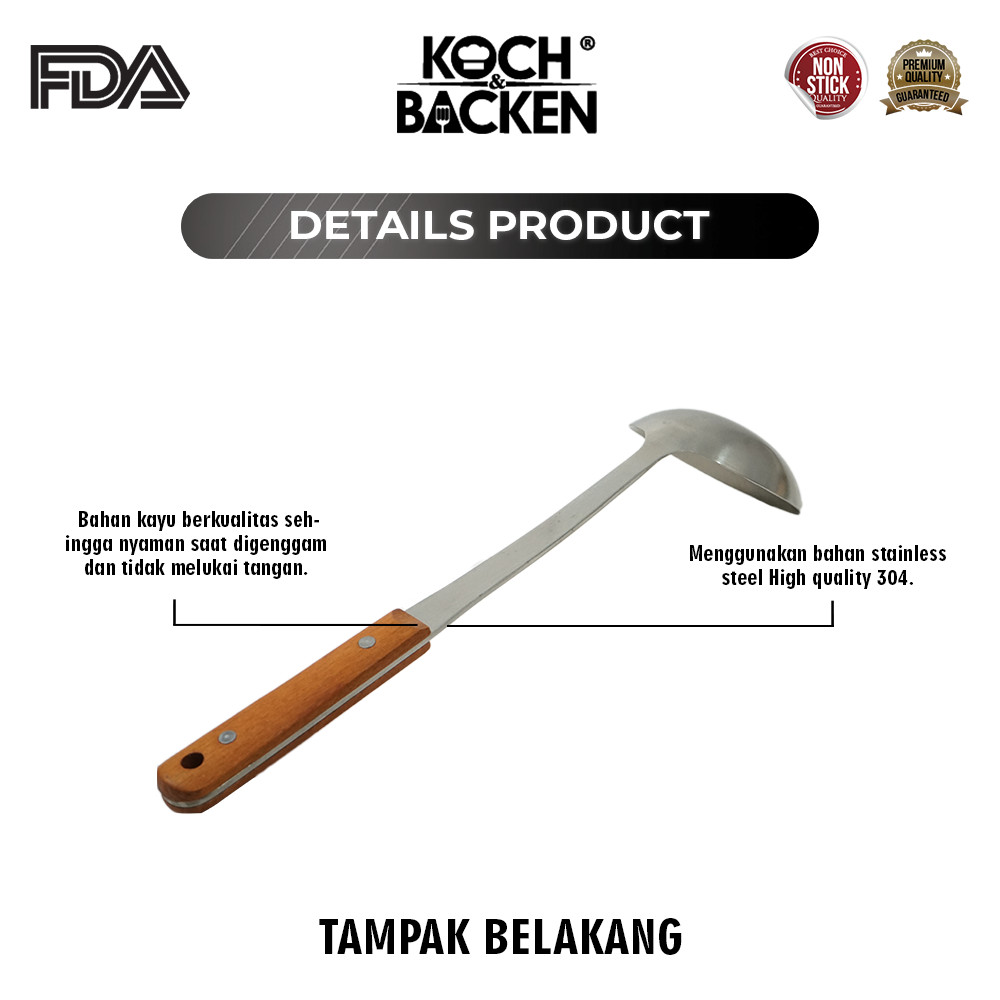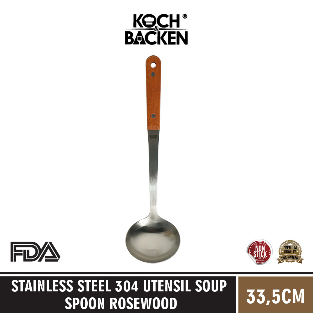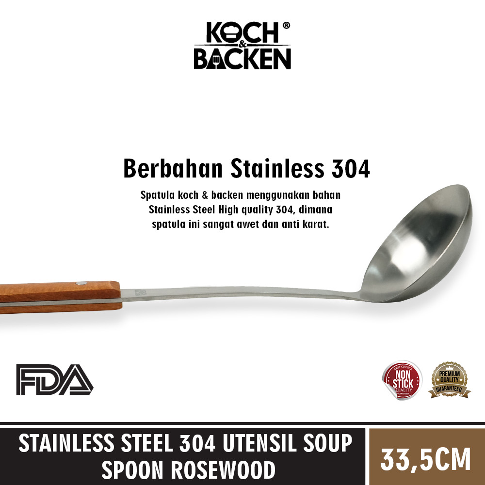 KOCH&BACKEN Stainless Steel Utensil Soup Spoon Rosewood 33cm Anti-scalding - Spatula Sutil Stainless 304 Tebal Sodet