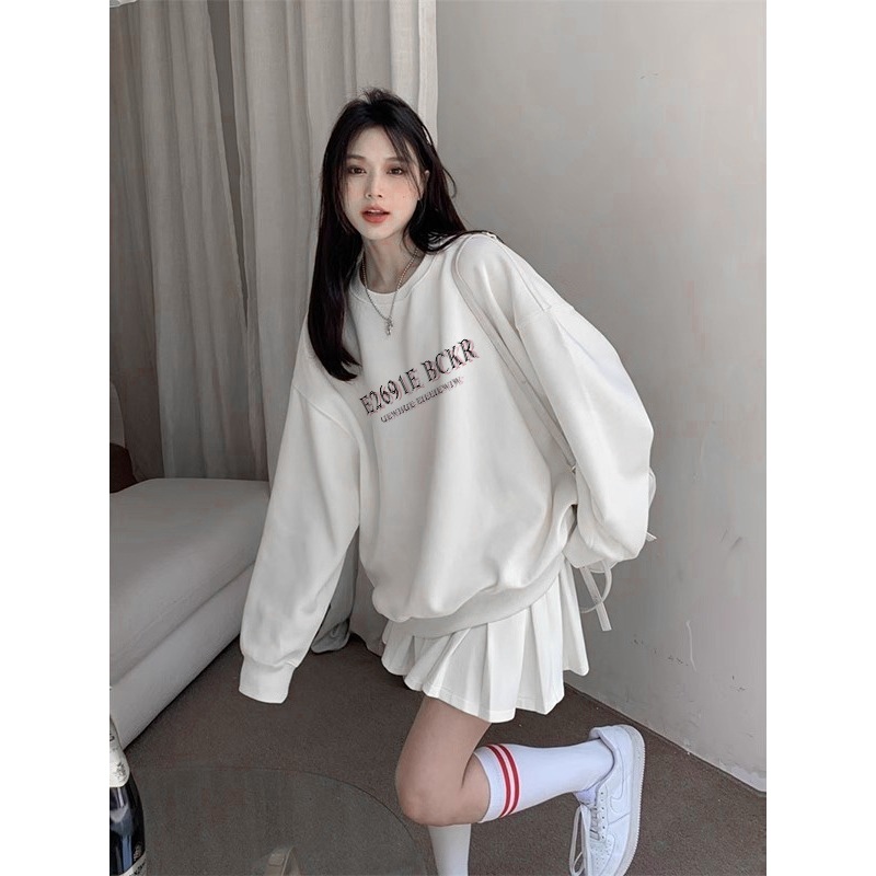 SWEATER OVERSIZE WANITA NGENGAT RETRO LENGAN PANJANG MODEL VERSI KOREA/BAJU SWEATER WANITA KOREAN STYLE LOOSE SWEATSHIRT
