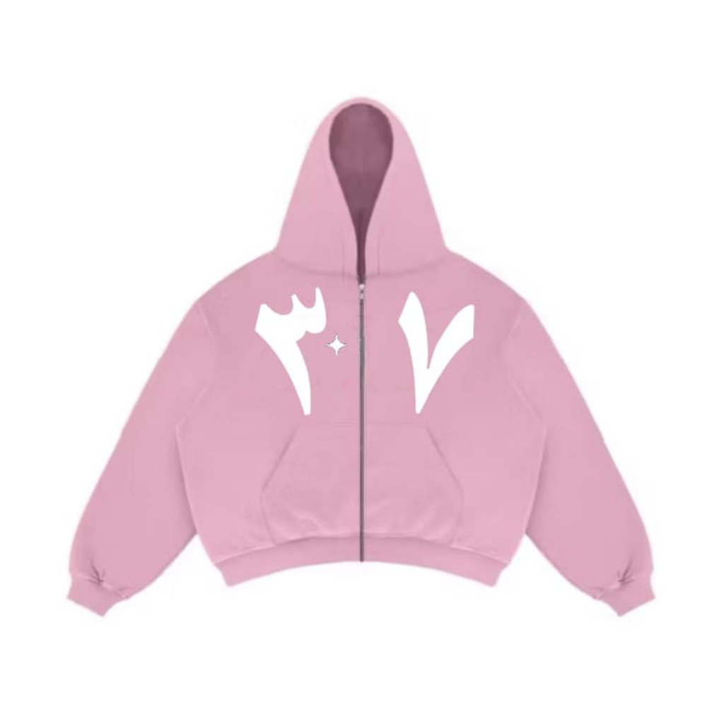 HOODIE ZIPPER | BOXY | PINK ARABIC ART | PRIA | WANITA | UNISEX | OUTFIT REMAJA KEKINIAN | OUTFIT SKENA | 300GSM STARSY PINK