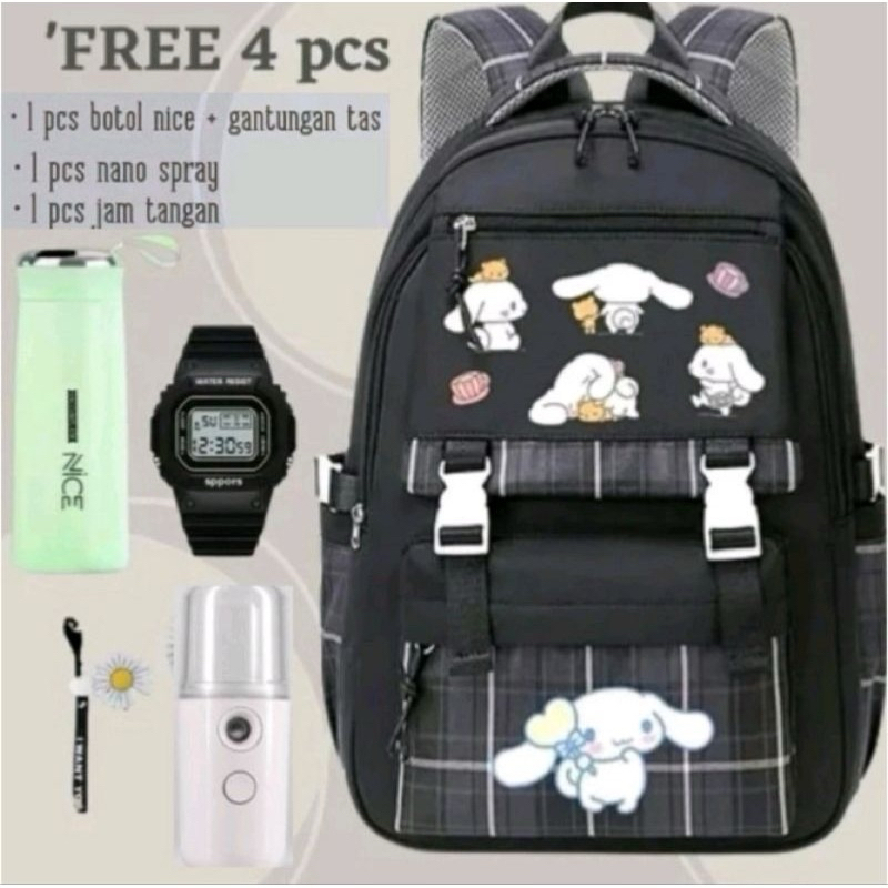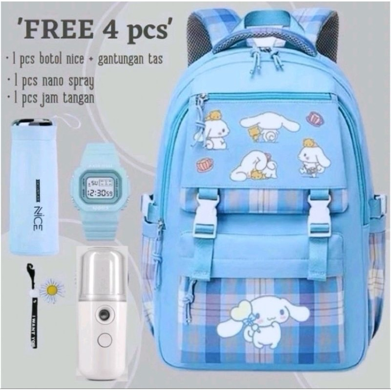 FLASH SALE 11.11 - PAKET KUMPLIT 5IN1 TAS RANSEL SEKOLAH ANAK PEREMPUAN SD SMP Motif CINNAMOROLL Free Botol Kaca Nano spray Jam Tangan Anak Gantungan Lucu