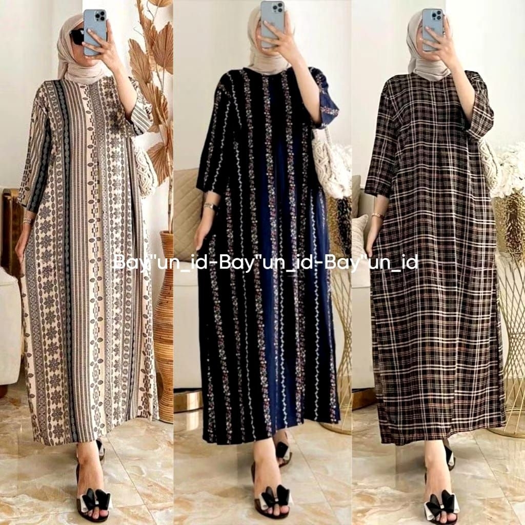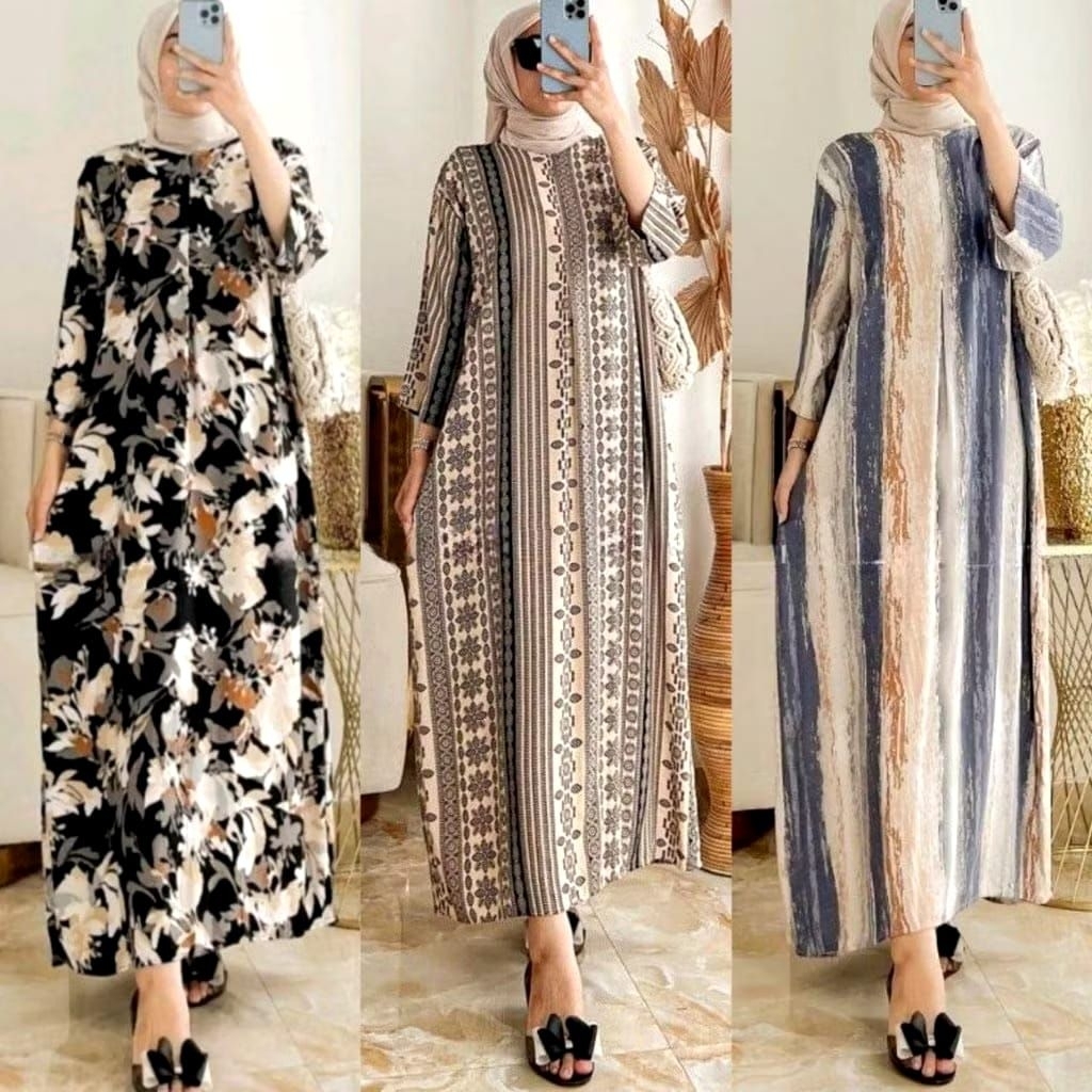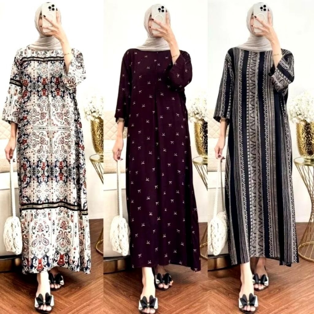 DASTER DRESS MOTIF LENGAN TANGAN 3/4 BAHAN RAYON BUSUI TERBARU DEWASA