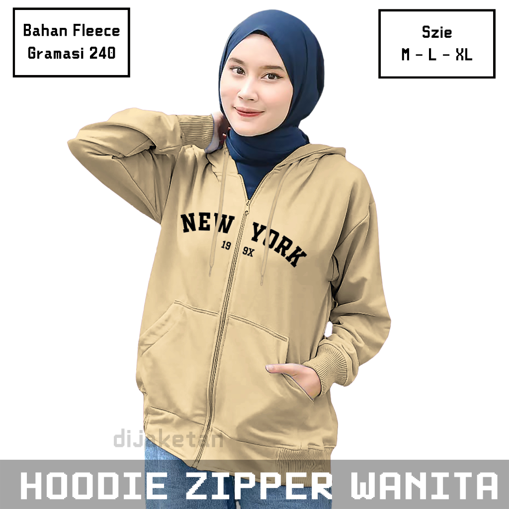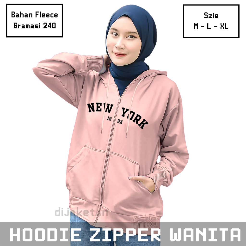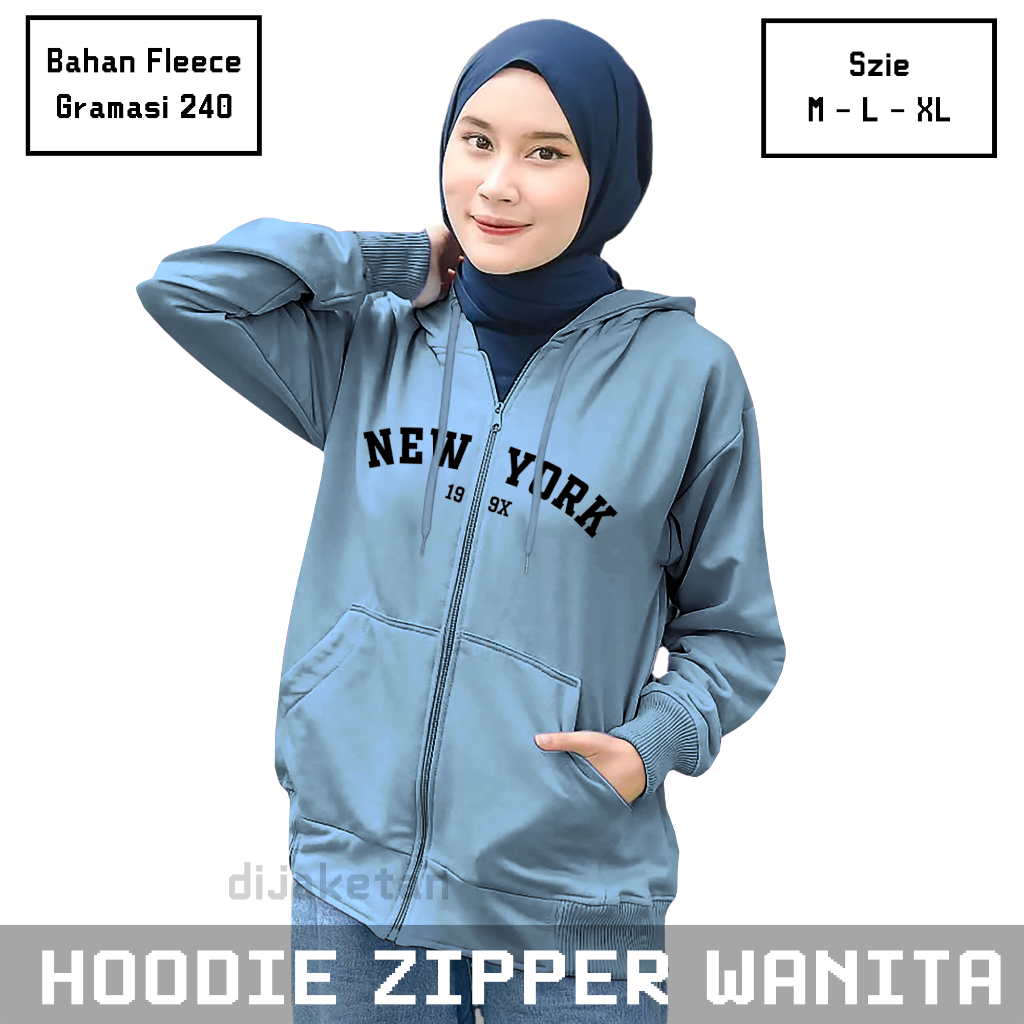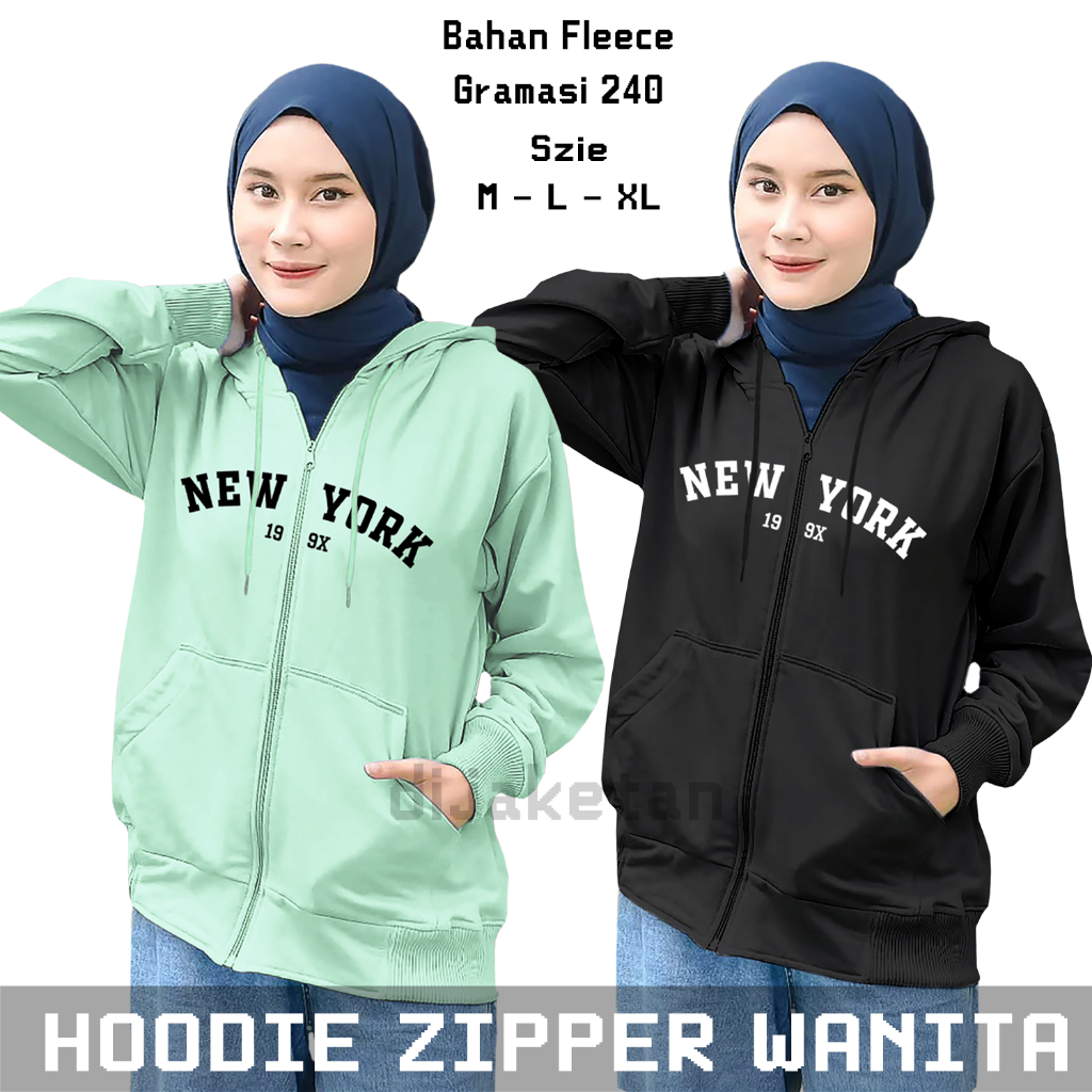 SWEATER HOODIE ZIPPER WANITA HODIE RESLETING CEWEK NEWYROK FLECEE M L XL KOREAN STLYE
