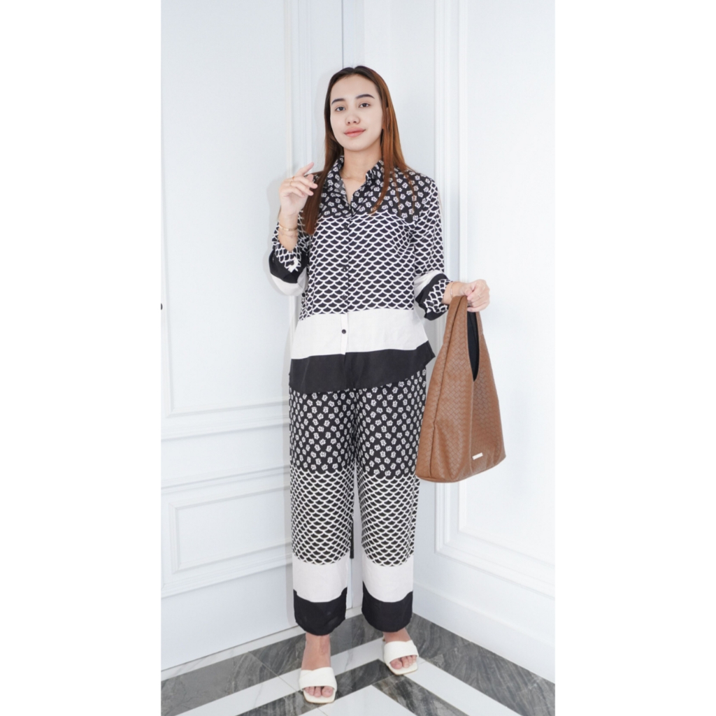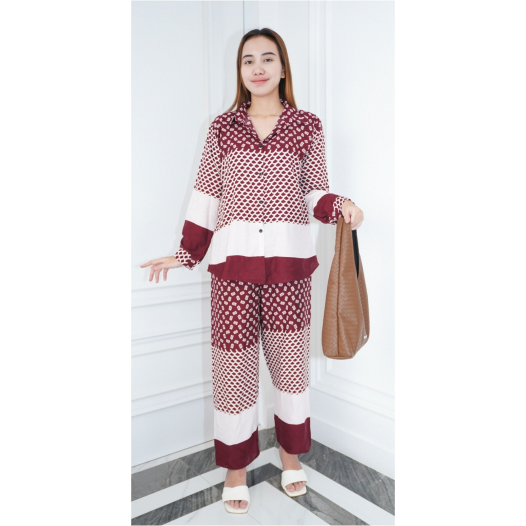BAJU ONE SET RAYON PIYAMA SETELAN LENGAN PANJANG WANITA KEKINIAN DEWASA JUMBO TERBARU KEKINIAN