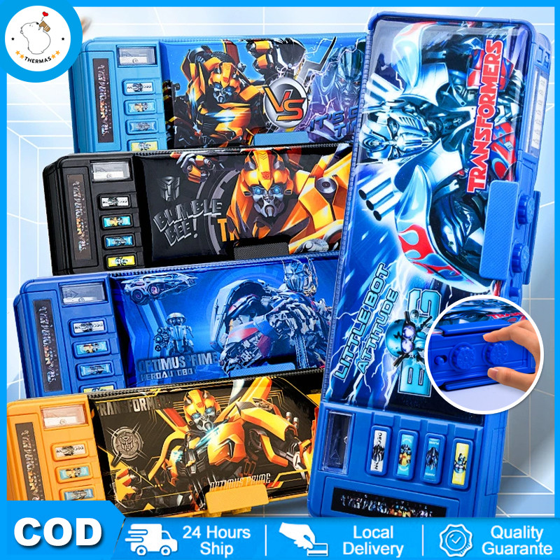 Tempat pensil magnetik kata sandi Tempat pensil berkapasitas besar Kata sandi Tempat pensil multifungsi Kata sandi Tempat pensil multifungsi kartun tahan air multifungsi dua sisi untuk anak-anak