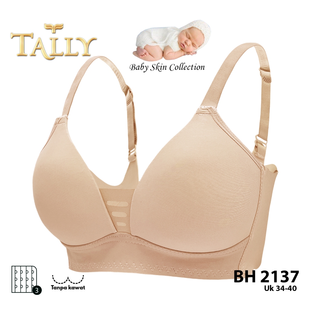 TALLY BH 2137 BRA TANPA KAWAT BUSA TIPIS BAHAN KATUN BABY SKIN PREMIUM CUP B KAIT 3 BRA HARIAN NYAMAN