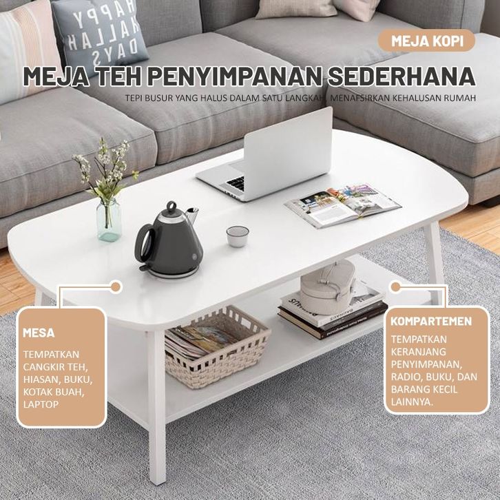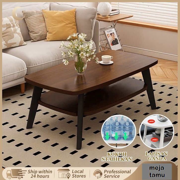 Meja tamu kayu 2 tingkat coffe table minimalis tea table kopi kayu multifungsi