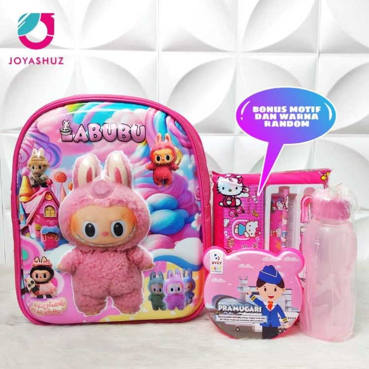 Tas Trolley Anak Perempuan Labubu 3D Timbul - Tas Sekolah Anak TK SD Koper Anak TK Tas Ransel Labubu Joyashuz