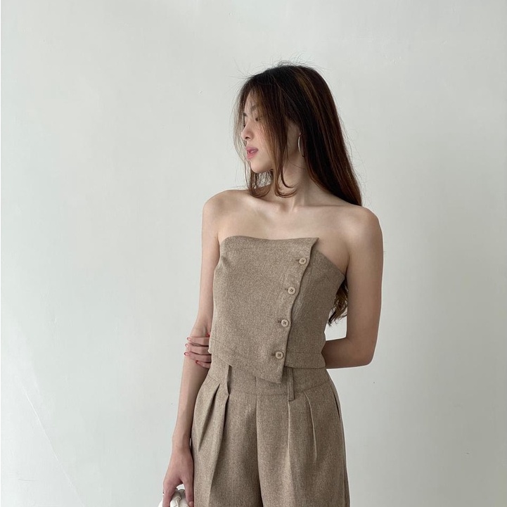 HAILEY ASYMMETRICAL T0P —— OCHA WEAR | TUBE BUTTONS TANKT0P | ATASAN TRENDY STYLISH WANITA | PREMIUM KAMISOL KEMBEN
