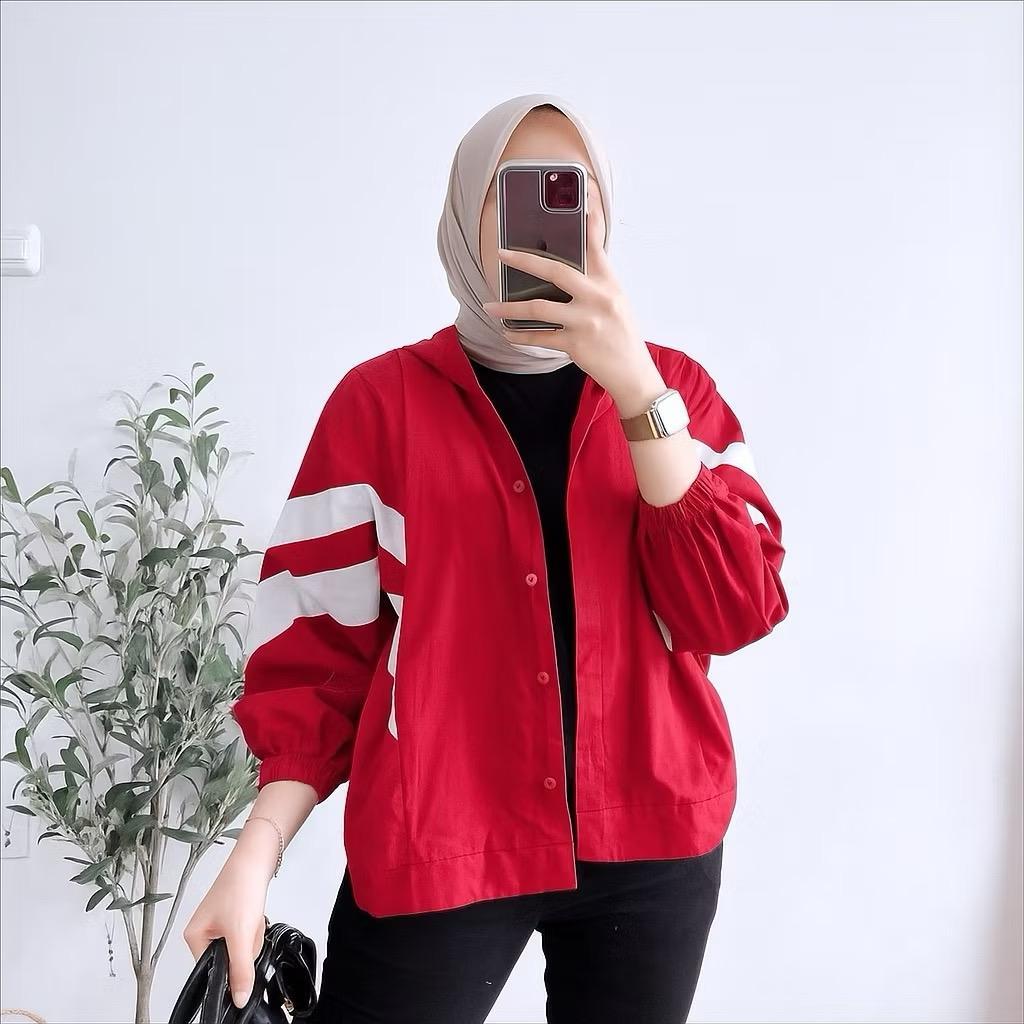 OOTD X INDEPENDENT DAY - KEMEJA WANITA HOODIE MERAH PUTIH