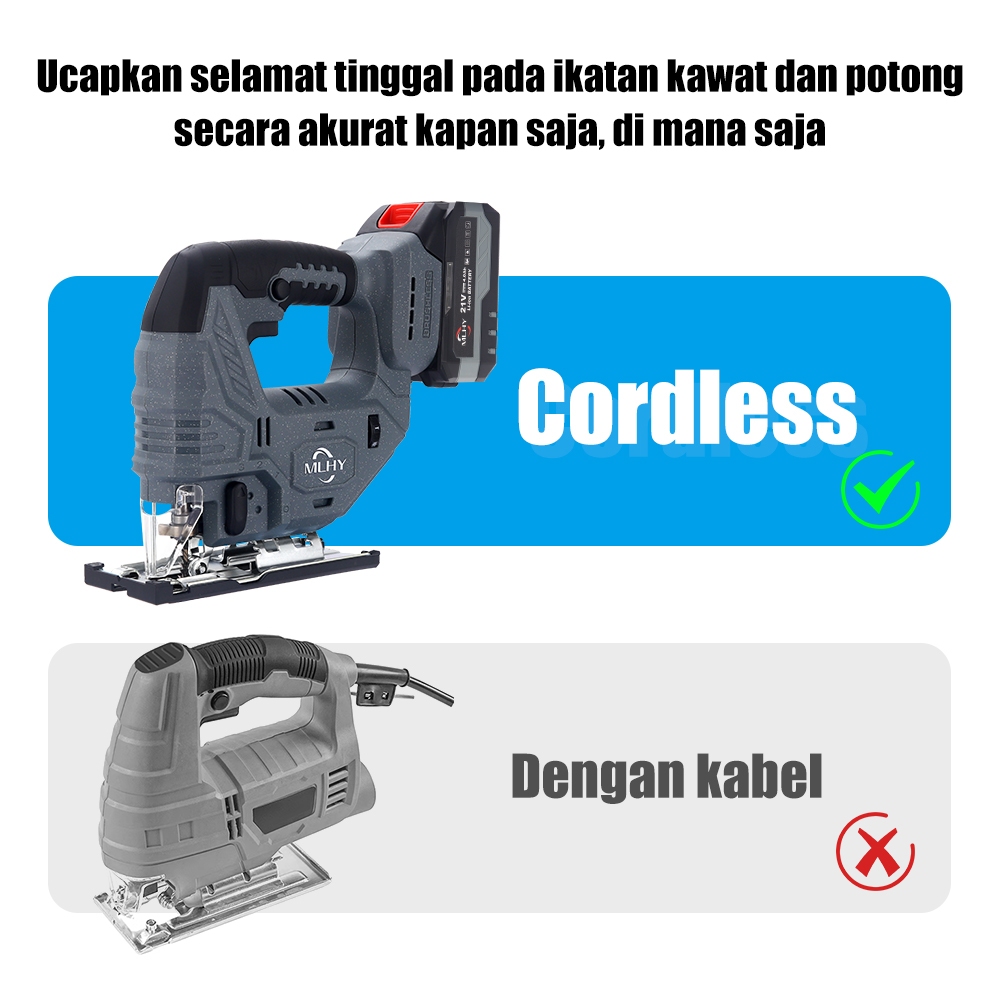 MLHY Mesin Gergaji Jigsaw Cordless Kayu Electric Jigsaw Brushless motor Variable Speed Cordless Kekuatan Tinggi Mesin Po