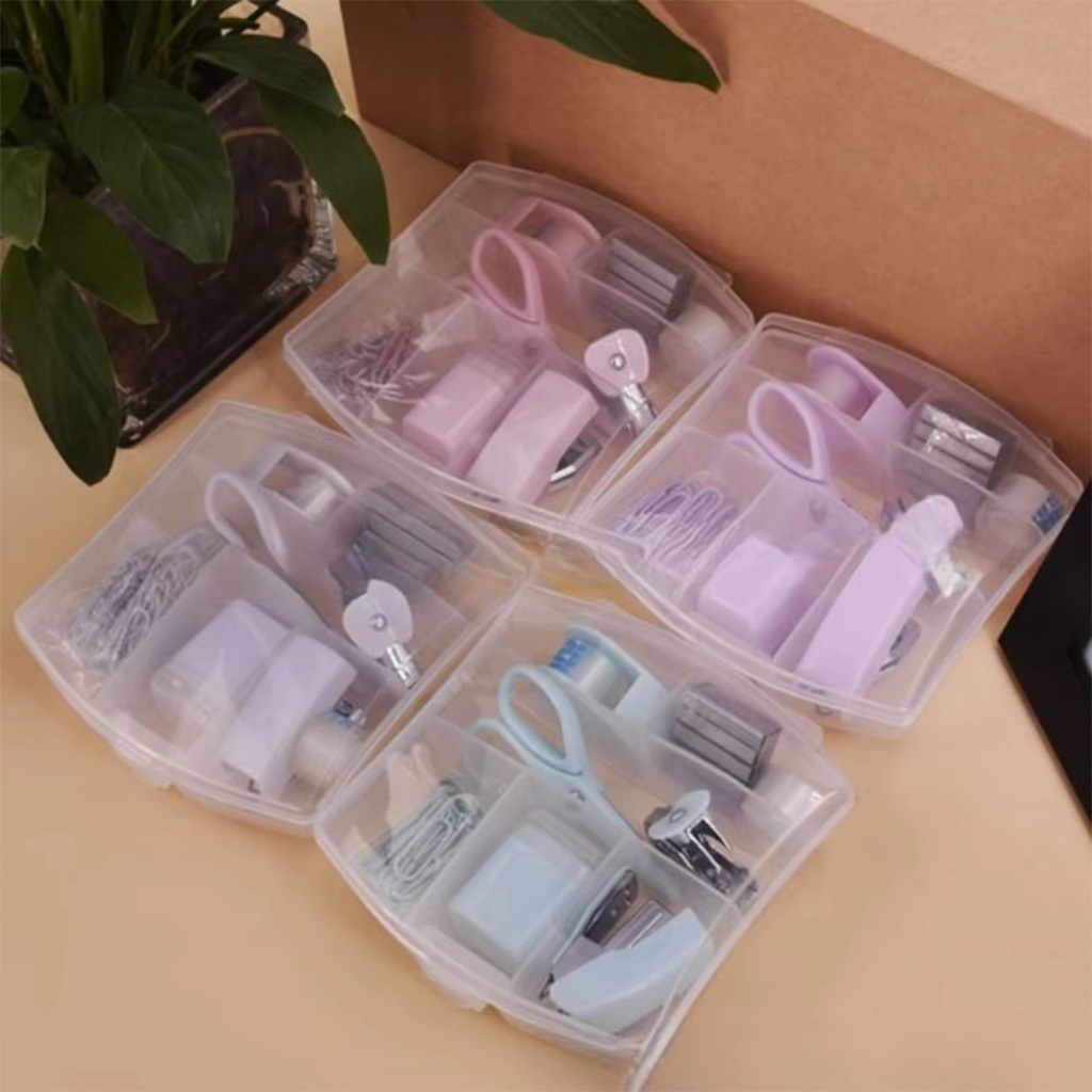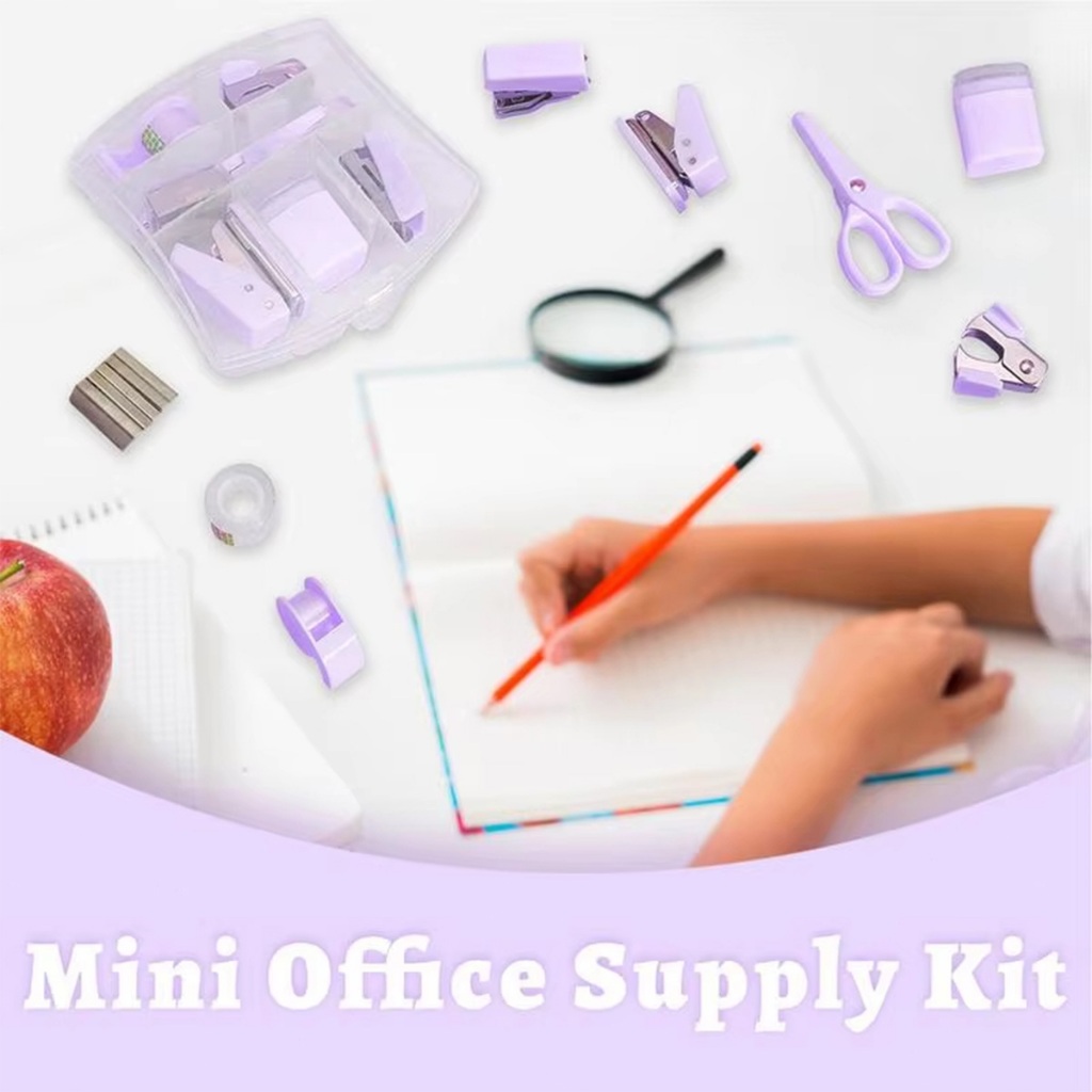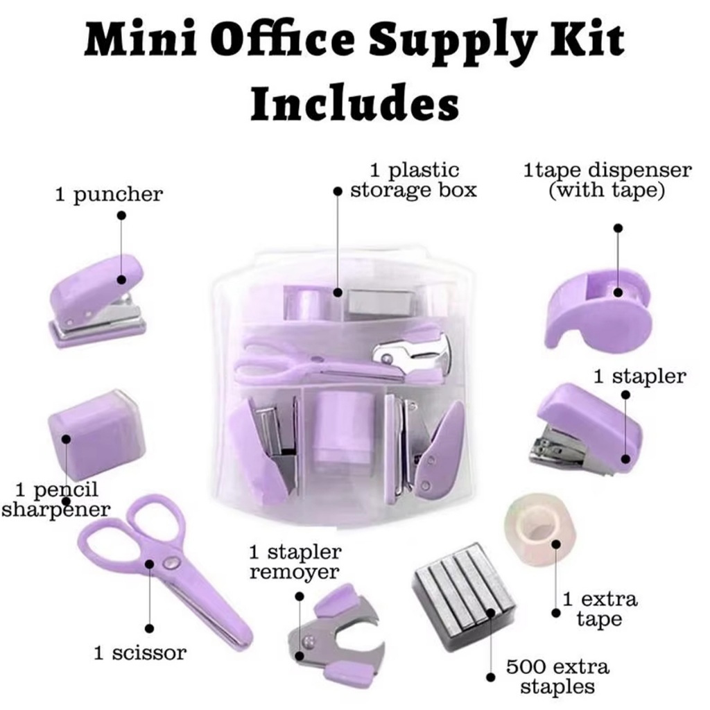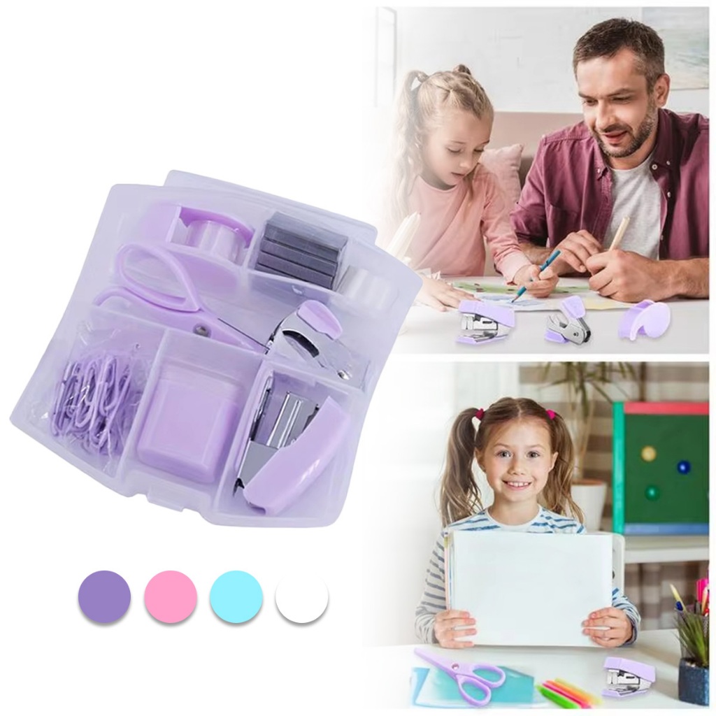 1 set Stapler Mini Portable Staples Kartun Lucu Stapler Kantor Meja Macaron Color staples set