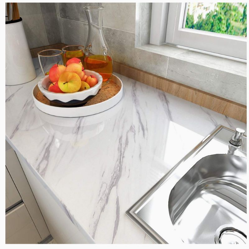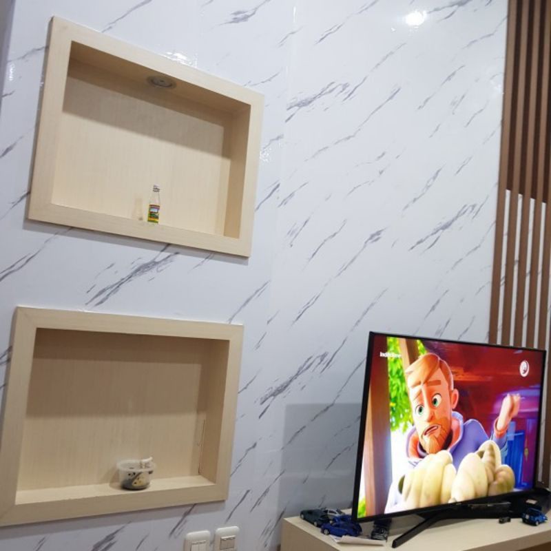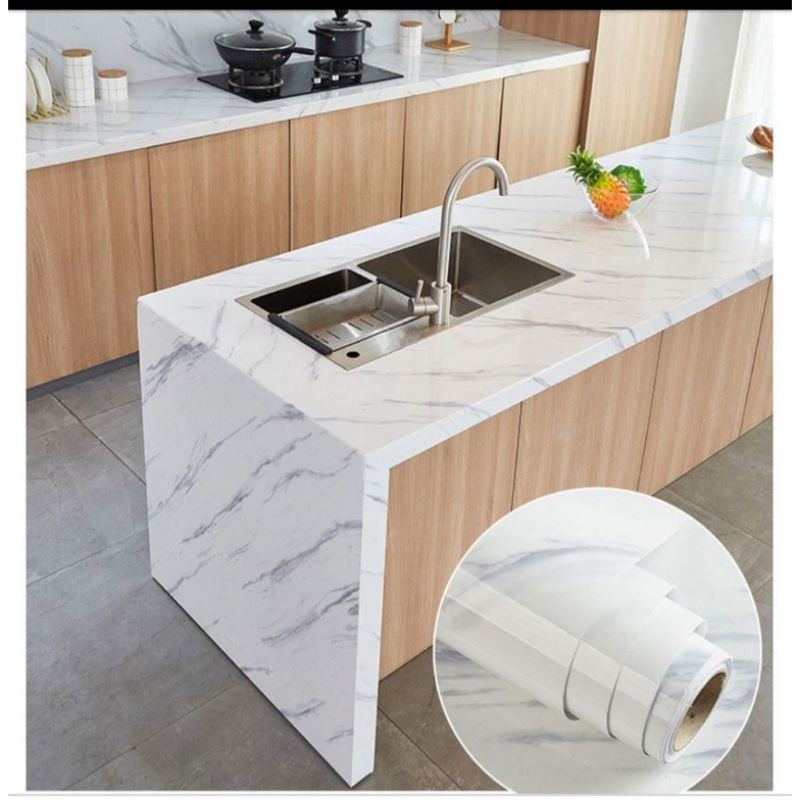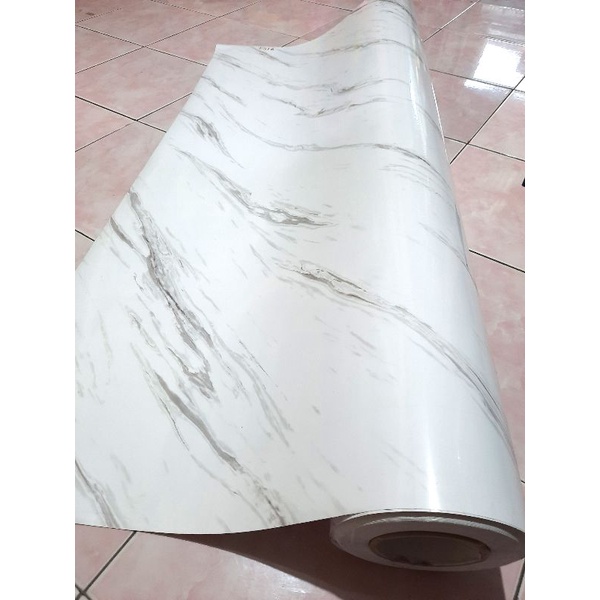 Stiker Lantai Motif Marmer Marble PutGlossy Mengkilap Premium / Wallpaper / Stiker Meja Dapur