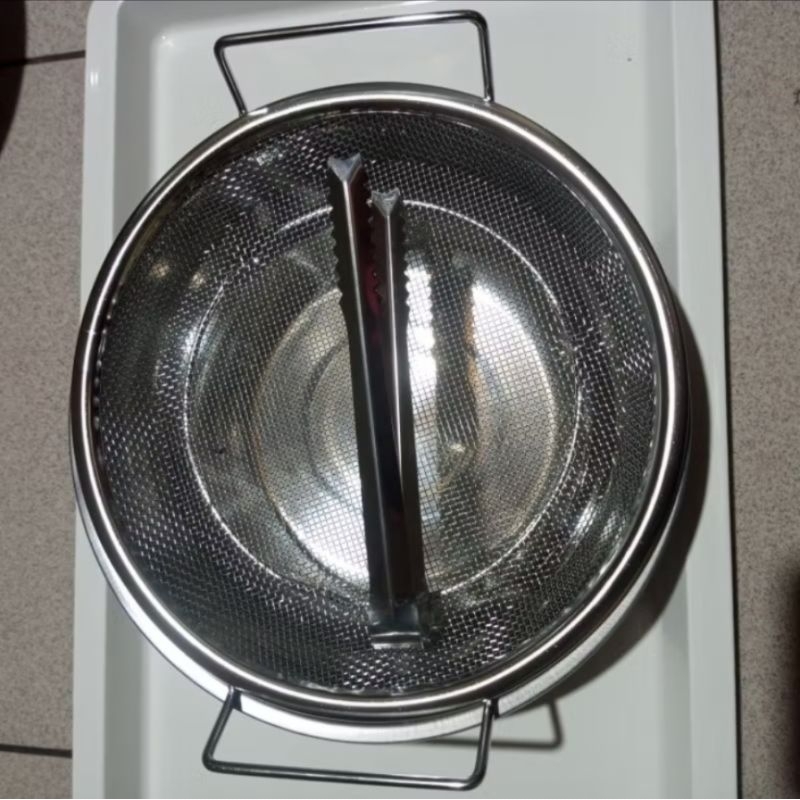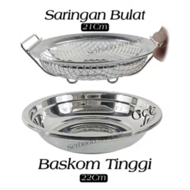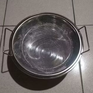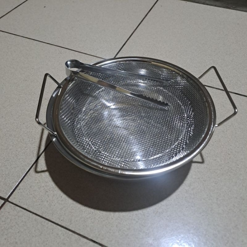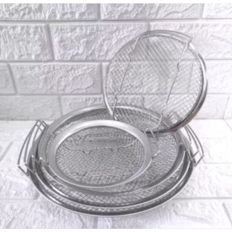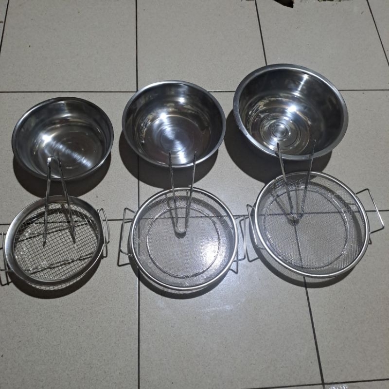 Set Saringan Bulat Tiris Minyak Sayur Serbaguna Gagang Stainless Tebal Kukus Goreng Lengkap Baskom/Nampan Bulat