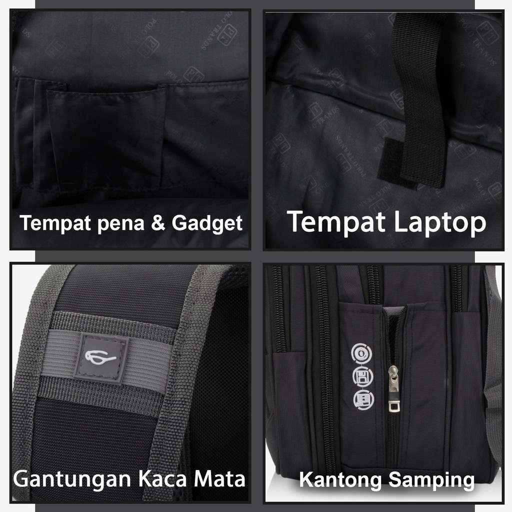 Tas Ransel Laptop Pria Wanita Polo Trands Original – Backpack Expandable Ukuran Besar, Free Rain Cover