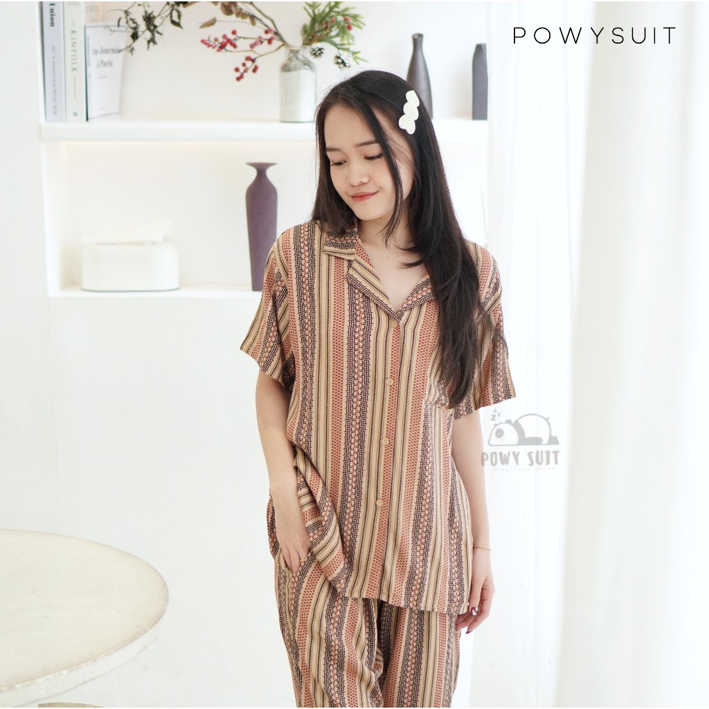 POWYSUIT PIYAMA RAYON WANITA MOTIF LENGAN PENDEK DAN SETELAN CELANA PANJANG - BAJU BUSUI PART 3