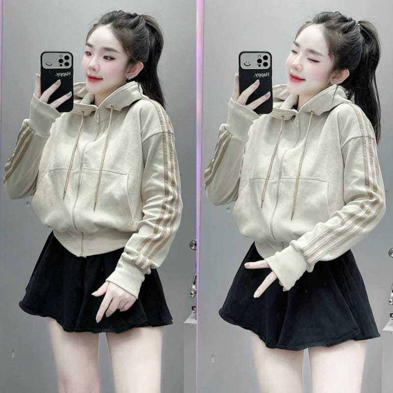 PUEL ZIP HOODIE ZIPPER JAKET SEMI CROPE WANITA KOREAN STYLE