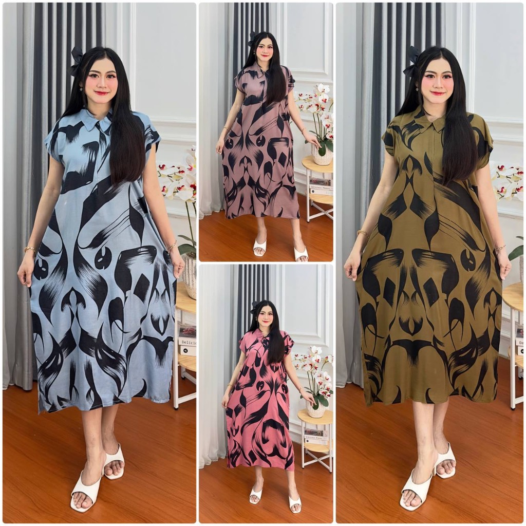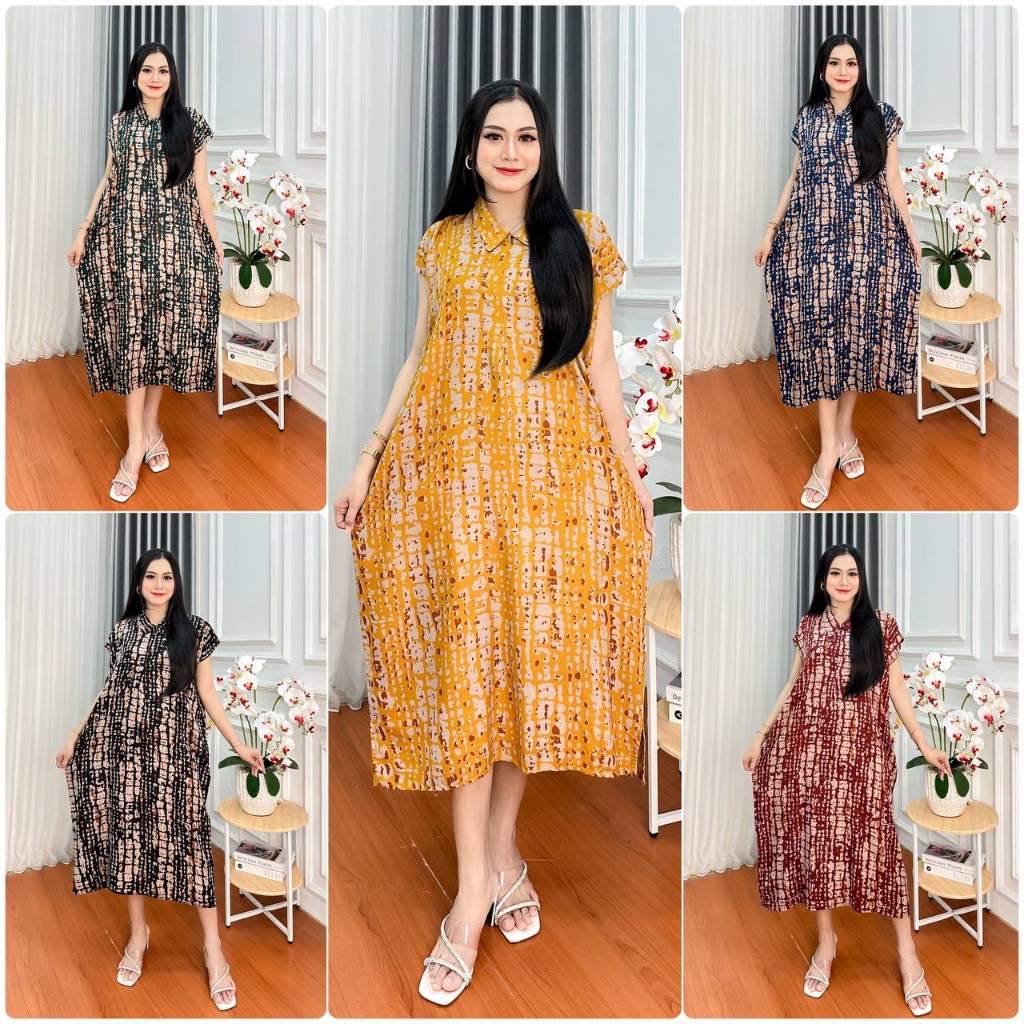 DASTER JUMBO KERAH DAUN RESLETING RAYON PREMIUM BUSUI BUMIL MURAH ADEM DASTER BATIK LENGAN PENDEK
