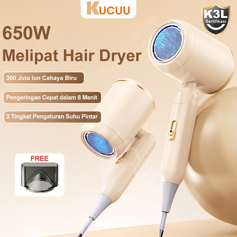 DISCON NEW KUCUU Melipat Hair Dryer Negative Ion Portable Low Watt 650w Foldable Pengering Rambut Hair Protection (Tipe
