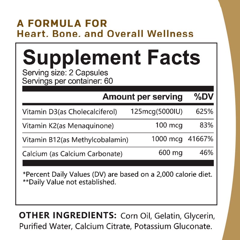 Wellness Calcium Vitamin D3 + K2 + B12 5000IU Kesehatan Tulang 120 Kapsul
