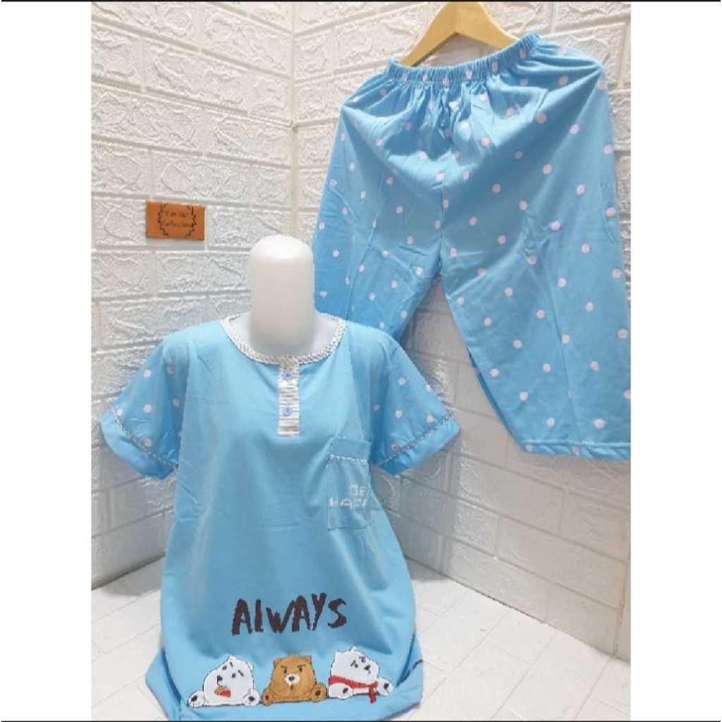 BAJU TIDUR 3/4 JUMBO / SETELAN BAJU TIDUR KAOS CELANA 3/4 JUMBO BIG SIZE BABYDOLL WANITA