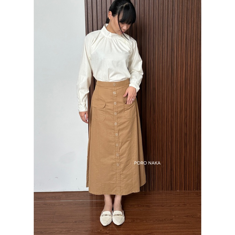 PORO NAKA - KAYA BUTTON LINEN SKIRT | ROK PANJANG MAXI