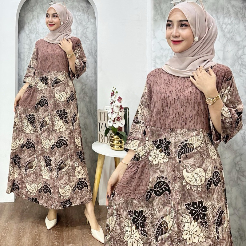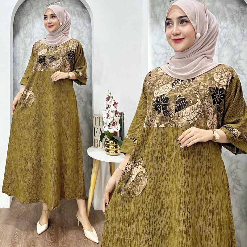 DASTER NAZILA DAUN SECKDRESS LENGAN 7/8 DASTER RAYON PREMIUM LD 120 TERBARU