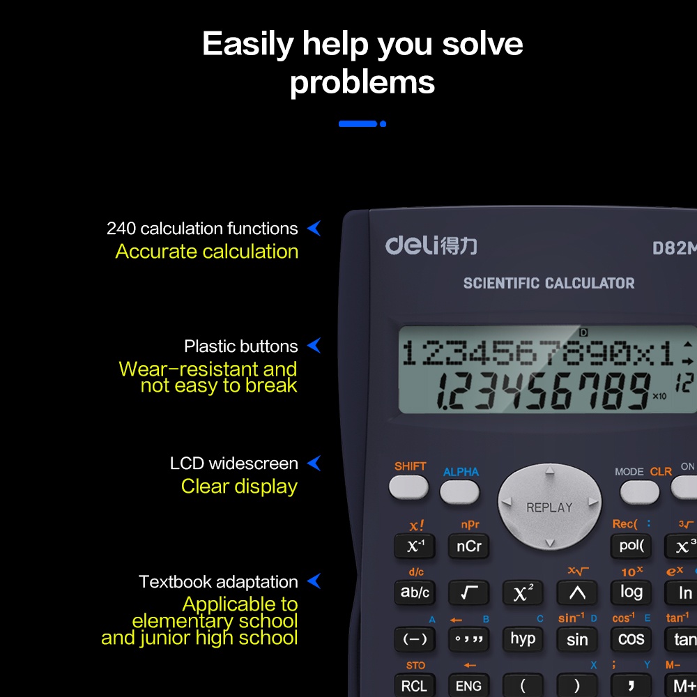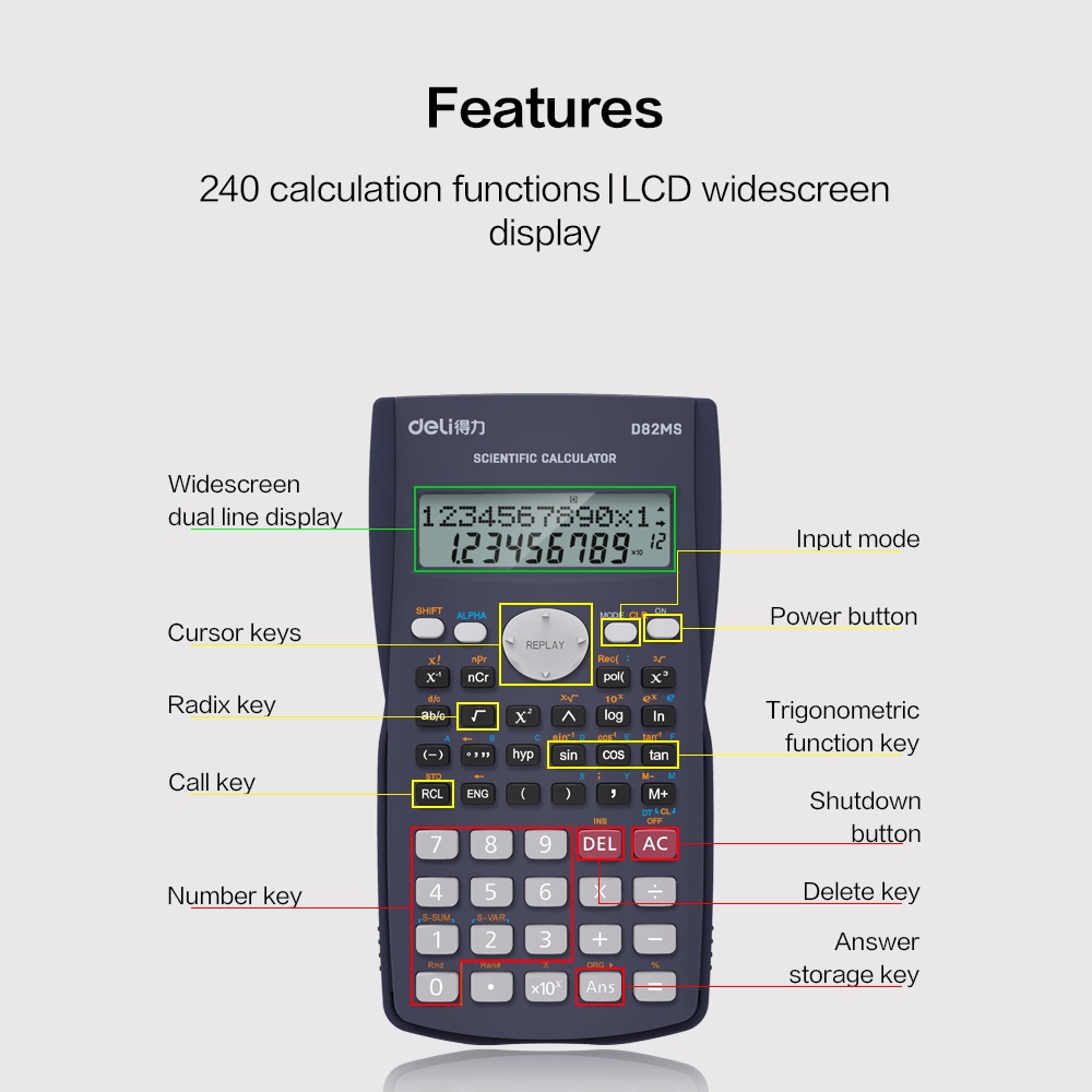 Deli ED82MS Scientific Calculator Kalkulator Scientific 240 Function untuk sekolah dan kantor