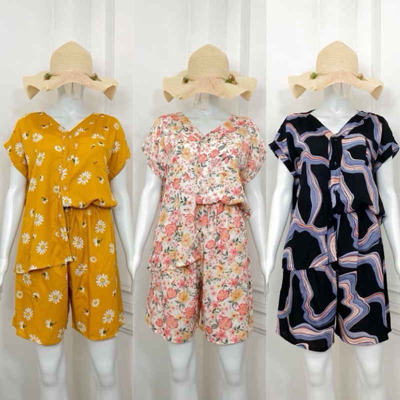 PIYAMA RAYON PREMIUM / PIYAMA KERAH V-NECK / PIYAMA KANCING / ONE SET BUSUI PENDEK