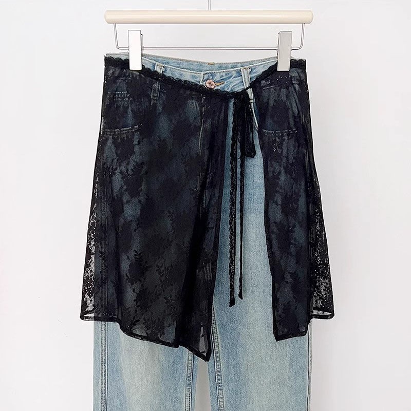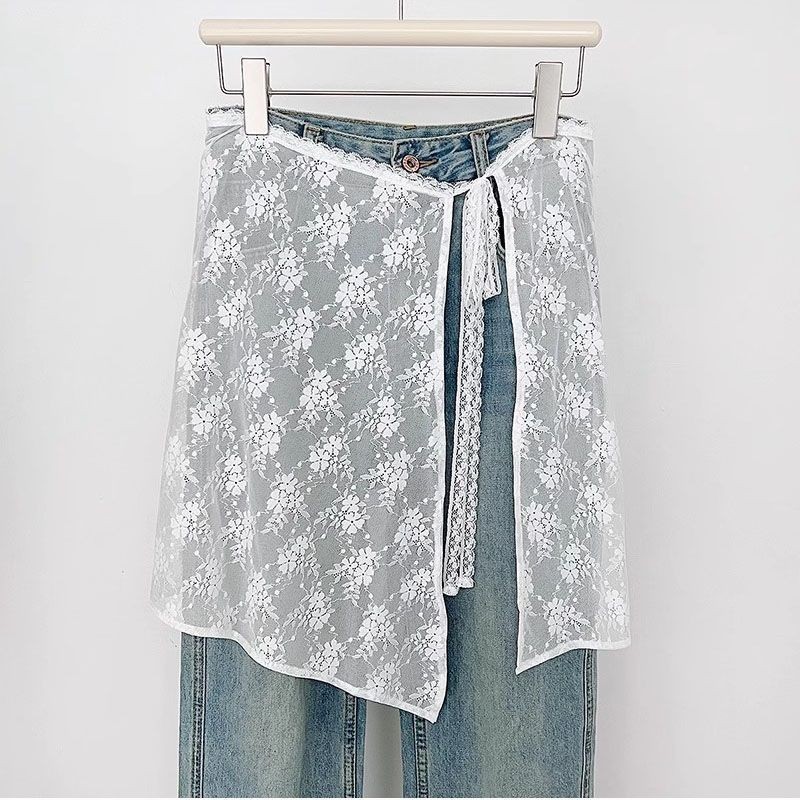 KOREAN LACE AND LACE VERSATILE LACE UP HEM WITH BUTTOCKS COVERING AND BUTTOCKS CURTAIN GAUZE SKIRT