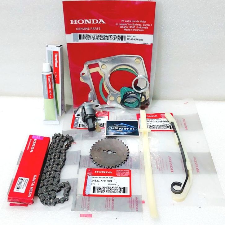 Paket Rantai Keteng + Tonjokan + Tensioner + Gigi Sentrik + Top Set + Lem Top Set Supra X 125 Khrisma Kirana KPH