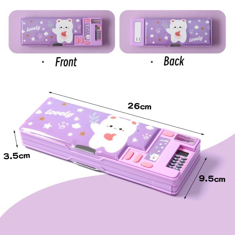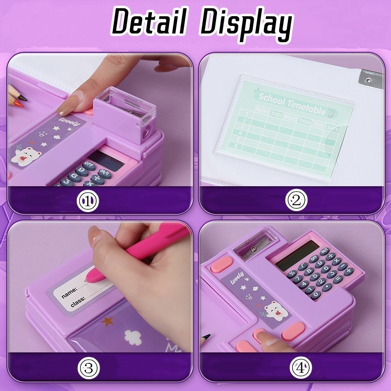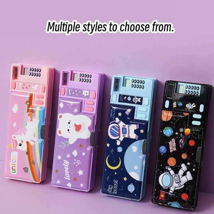 【】Pop Out Pencil Case Kalkulator Pencil Case Multifungsi Kotak Pensil dengan Kalkulator /Rautan Pensil Desain Hewan Organizer Alat Tulis Untuk Anak Laki-laki/Perempuan