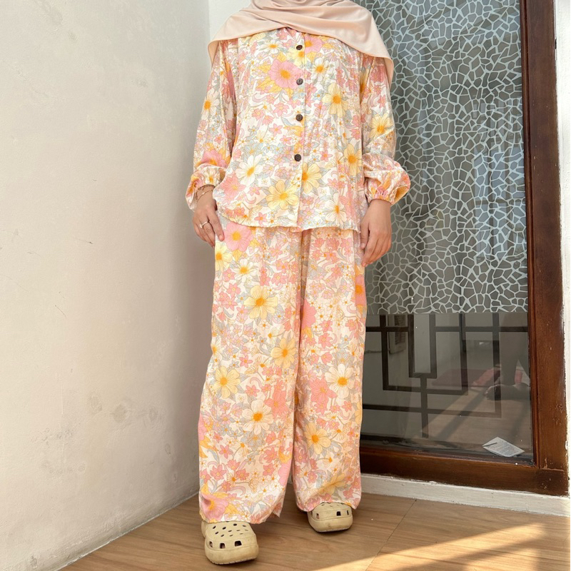 KEEVA PIYAMA ONESET RAYON MOTIF KEKINIAN/ SETELAN WANITA JUMBO OVERSIZE