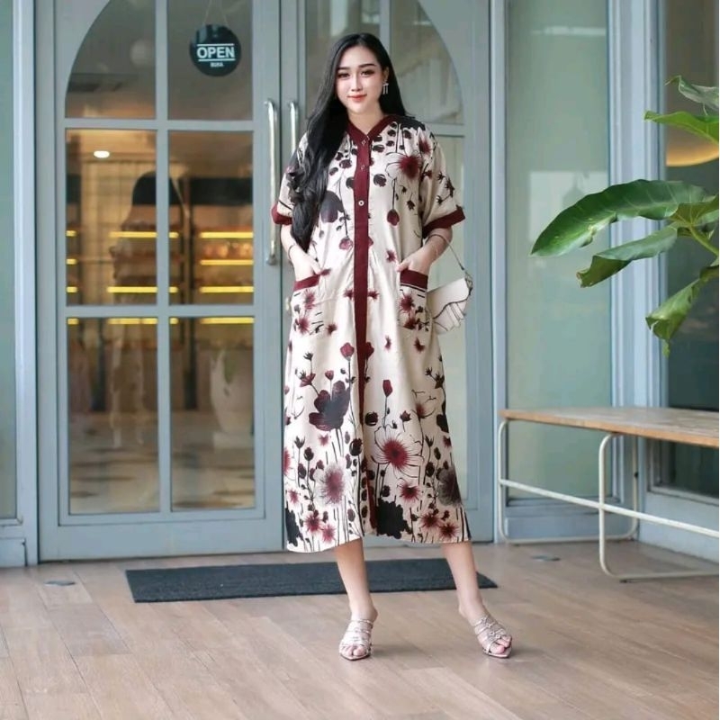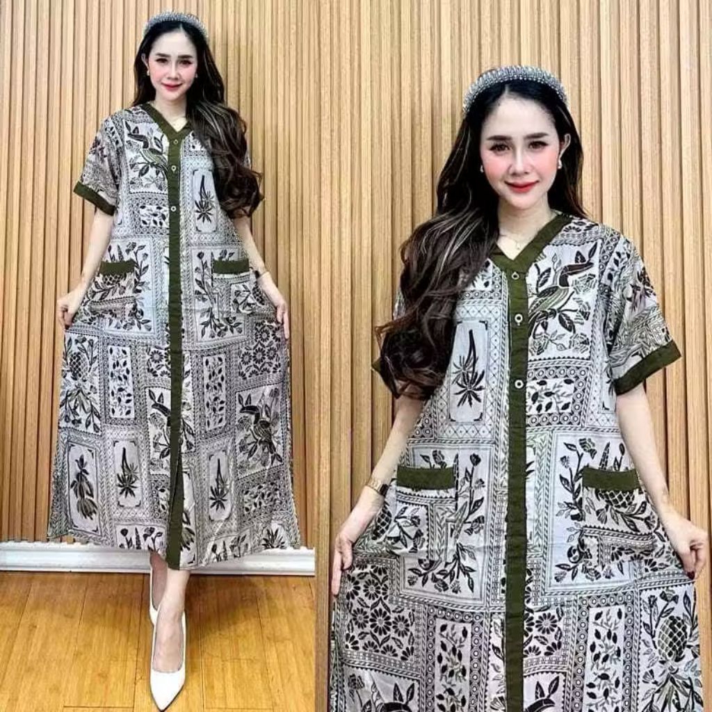 DASTER RAYON PIYAMA PERI JUMBO LD 120 KEKINIAN BUSUI KANCING DEPAN TERBARU