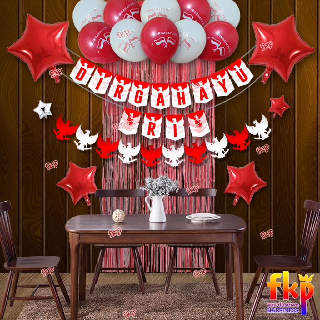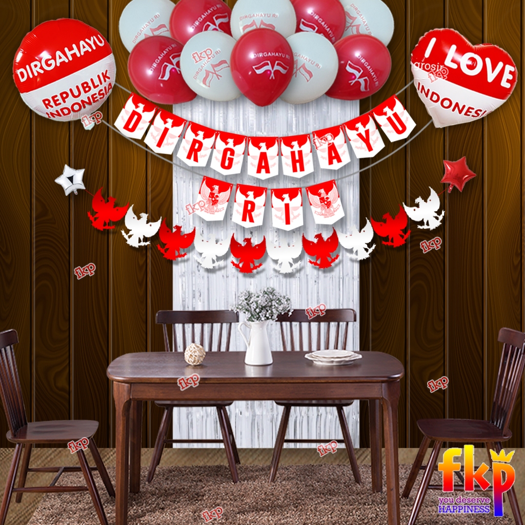 FUN KIDS PARTY Paket Dekorasi Simple Balon Dirgahayu RI / Balon HUT RI / Dekorasi 17an Agustusan / Hiasan Agustusan / Kemerdekaan RI / Balon Bendera