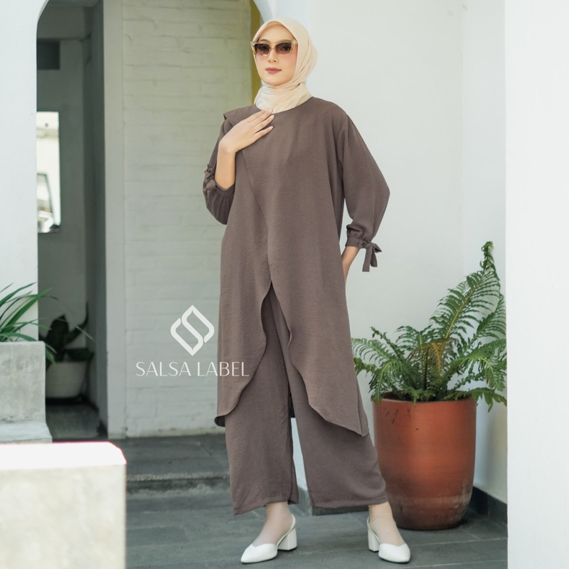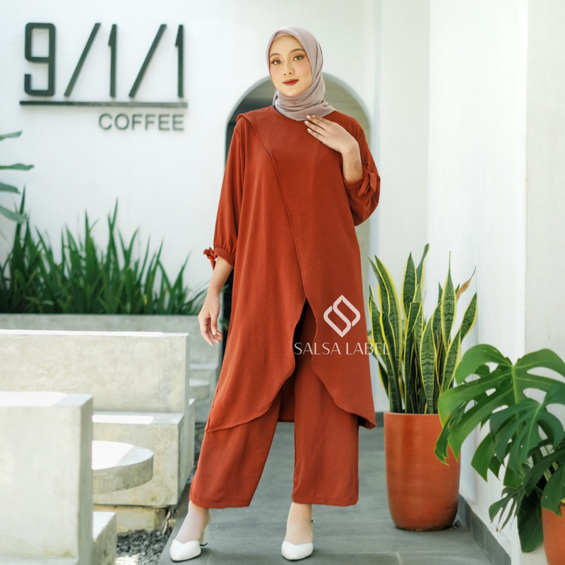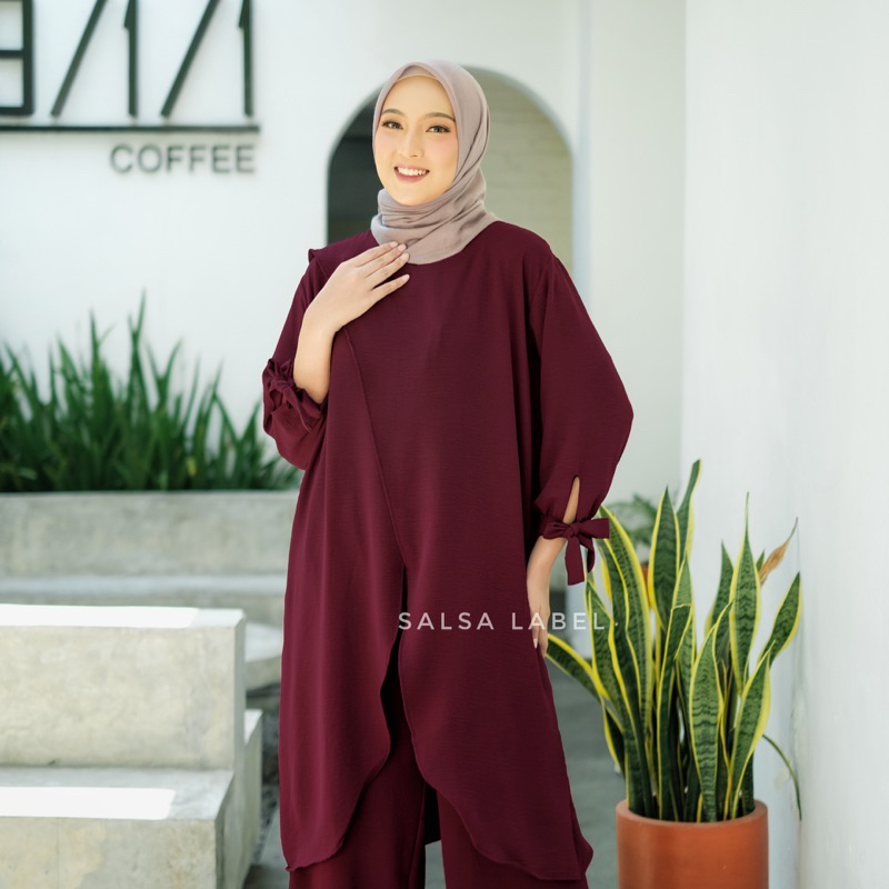 MADINA TUNIK ONE SET CRINKLE AIRFLOW, SETELAN WANITA MUSLIM DEWASA TANGAN PITA 3/4