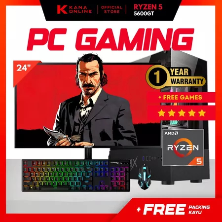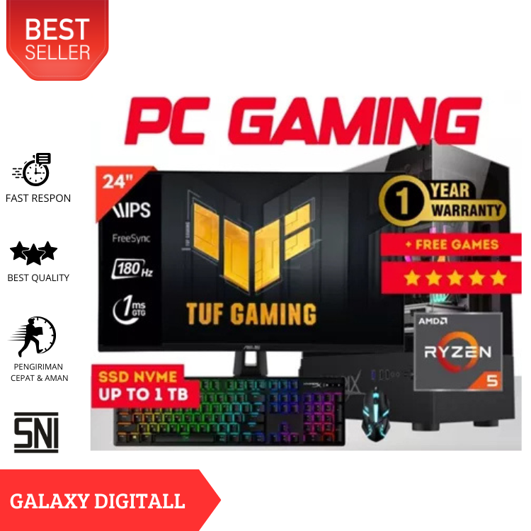 PC GAMING FULLSET AMD RYZEN 5 5600GT SSD 1 TB RAM 64GB LED 24 INC KEYBOARD MOUSE GAMING KOMPUTER MURAH TANPA DP