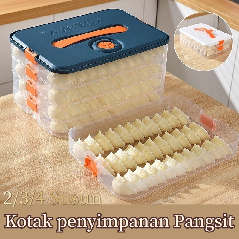 2/3/4 SUSUN KOTAK PENYIMPANAN PANGSIT DUMPLING KOTAK PLASTIK KOTAK PENYIMPANAN MAKANAN PRAKTIS