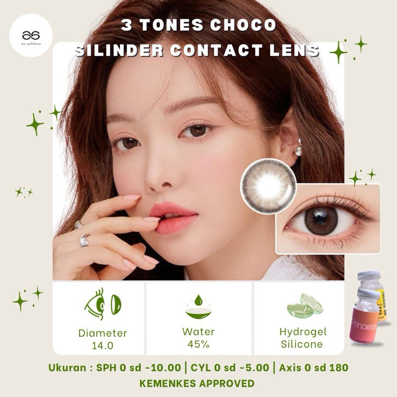 [Mall] AS_SOFTLENS TORIC CYLINDER/SILINDER + MINUS WARNA CHOCO | ORIGINAL PRINCESS TRITONE CHOCO| READY STOCK✨
