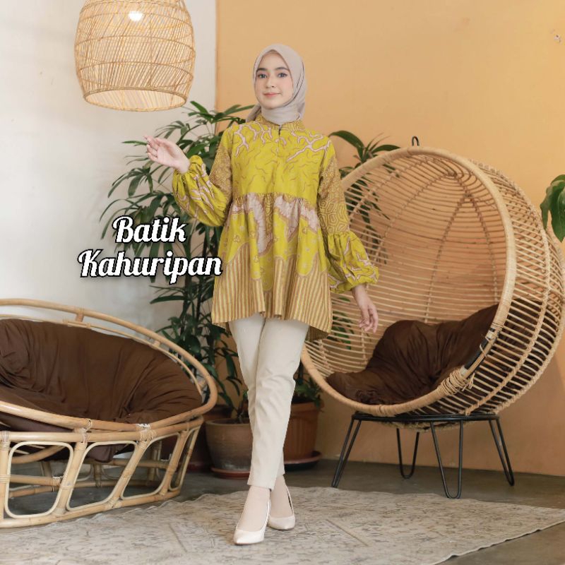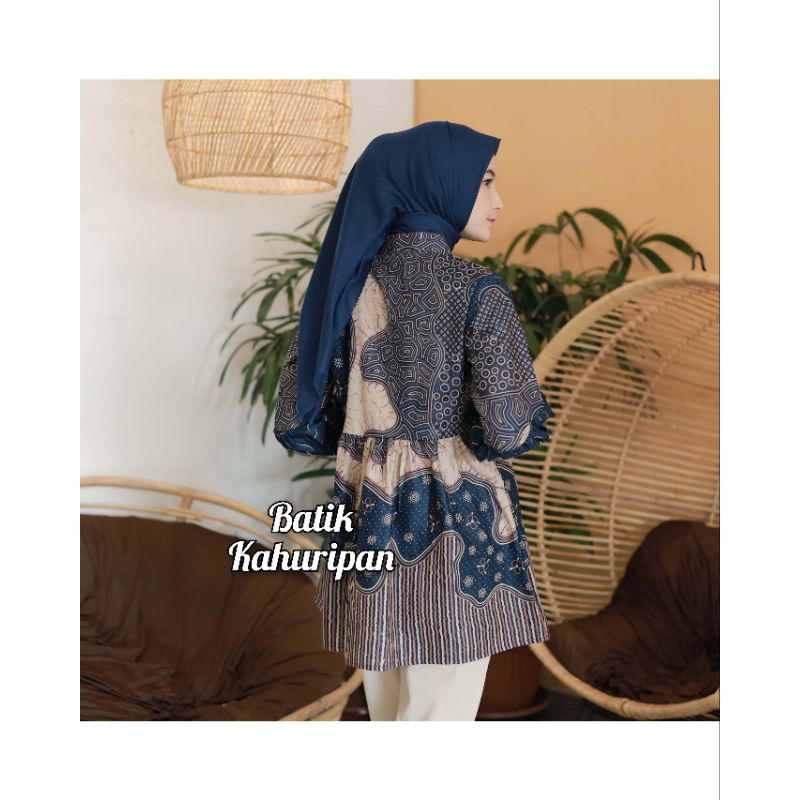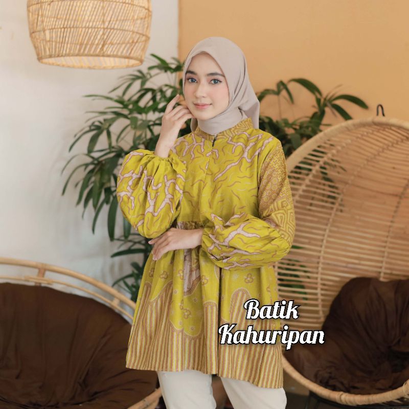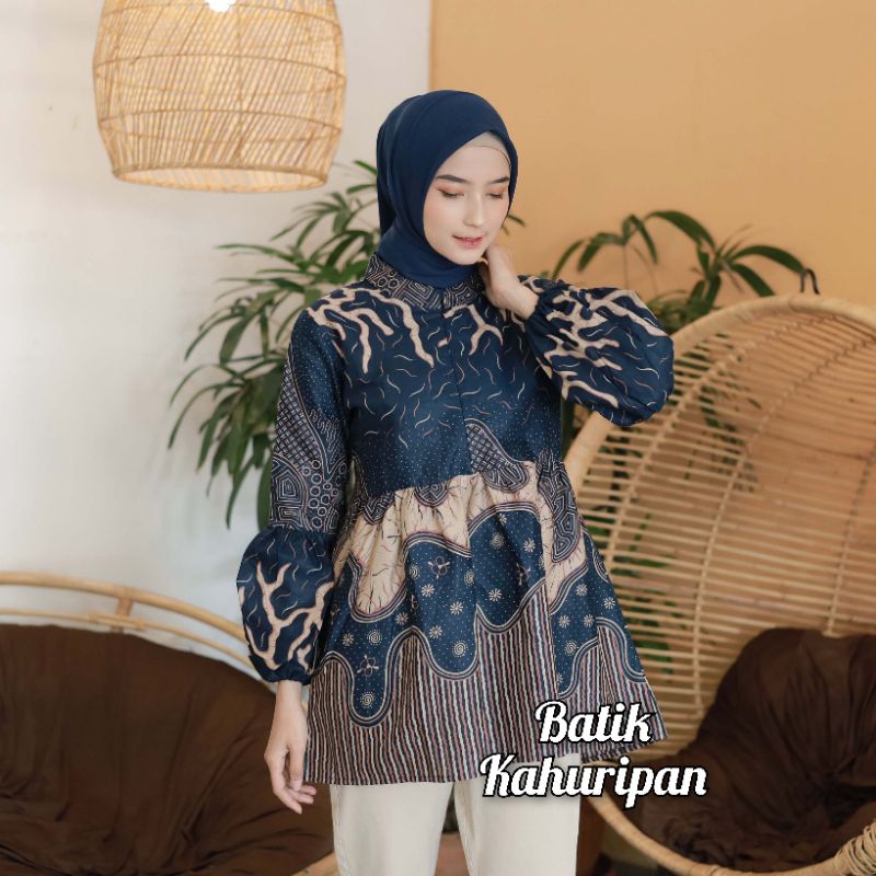 BATIK WANITA MODERN BAJU BATIK WANITA LENGAN BALON RESLETING DEPAN BY BATIK KAHURIPAN