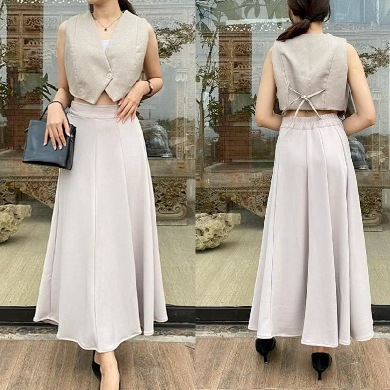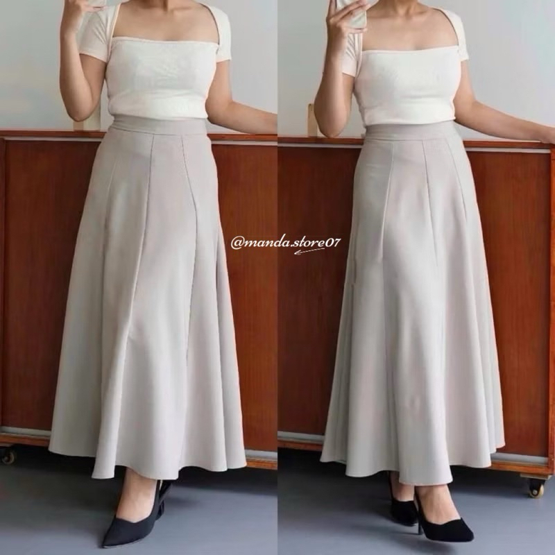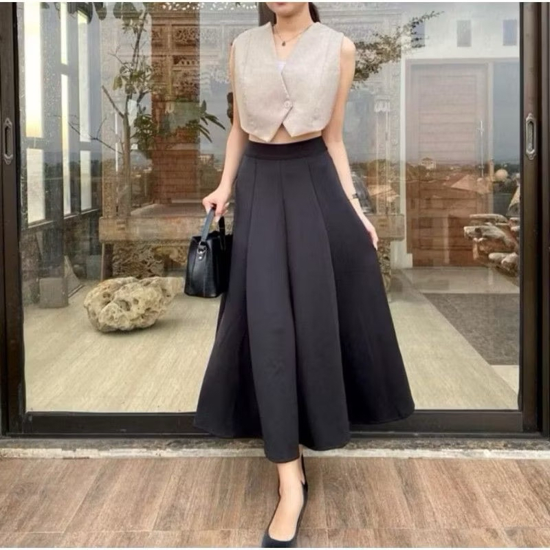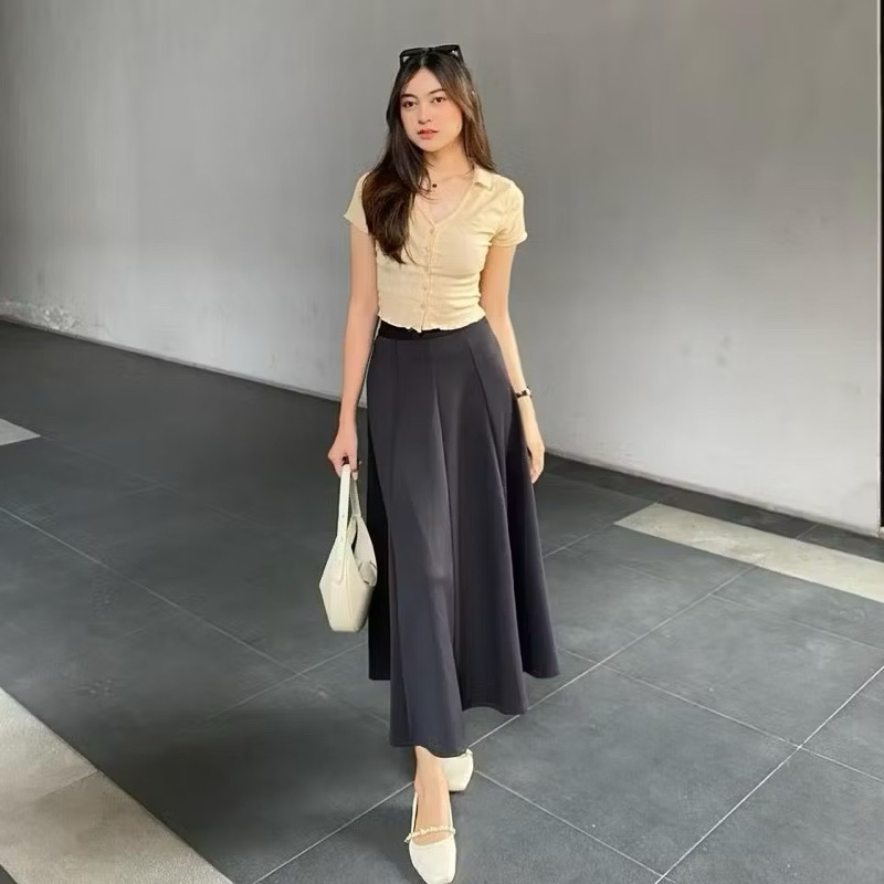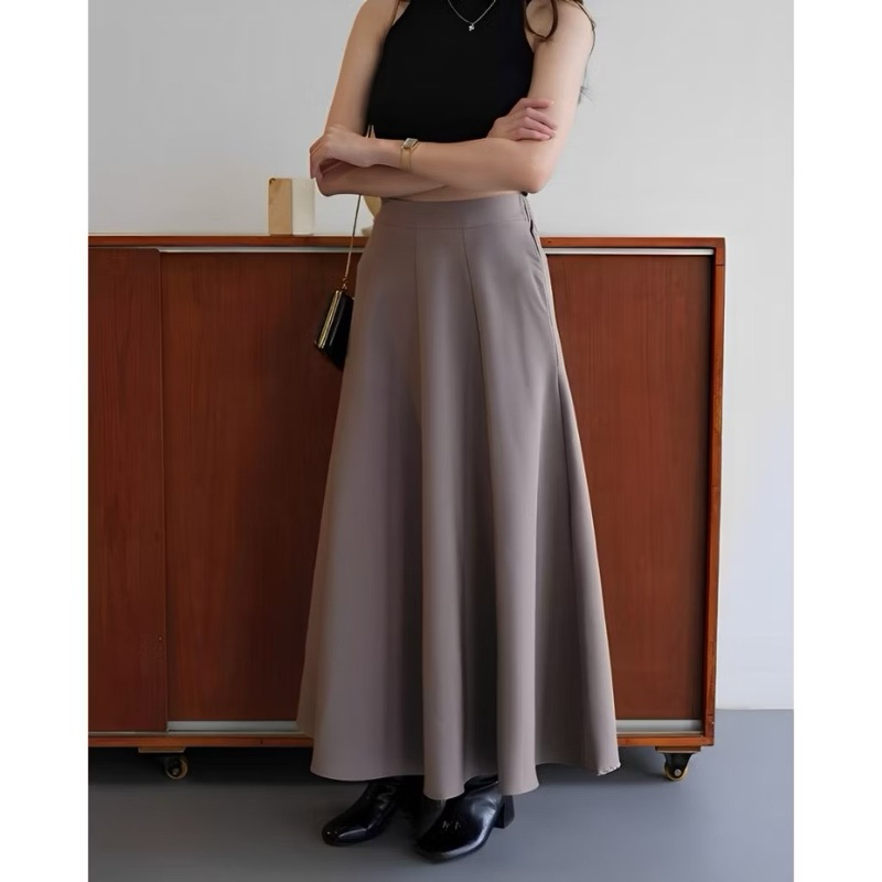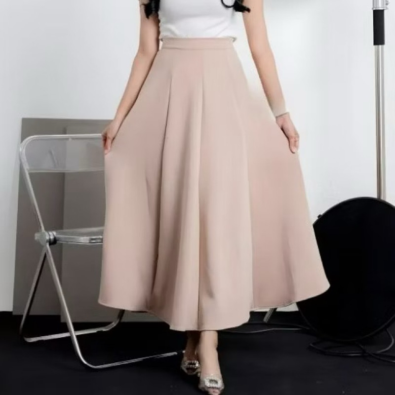 AUDY SKIRT - KOREAN LOOSE MAXI SKIRT ROK WANITA ANTI KUSUT POLYESTER - ROK FLARE WANITA - ROK BASIK POLOS - MAXI SKIRT ROK MAYUNG PANJANG WANITA
