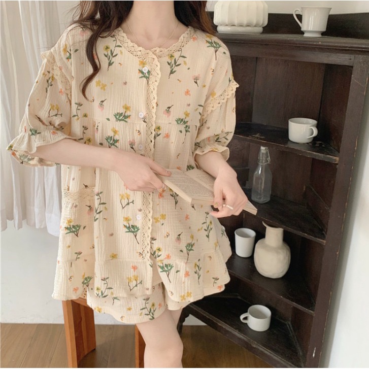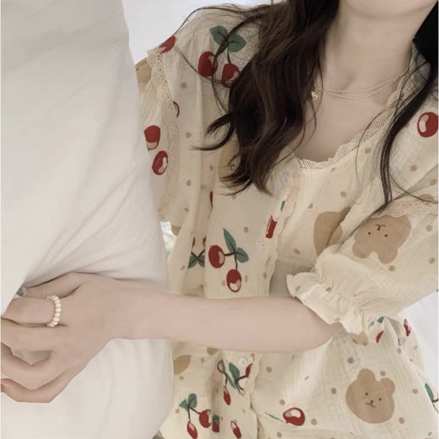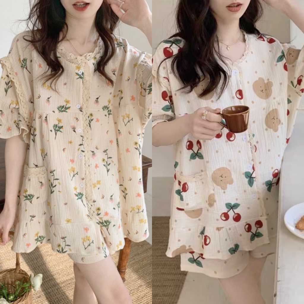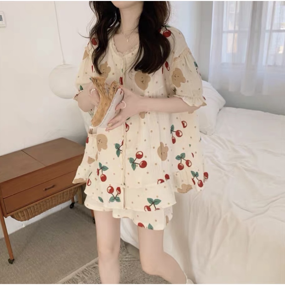 BAJU TIDUR PIYAMA IMPORT CUTE KOREA MOTIF KARTUN LUCU BAJU TIDUR SET WANITA CELANA PENDEK