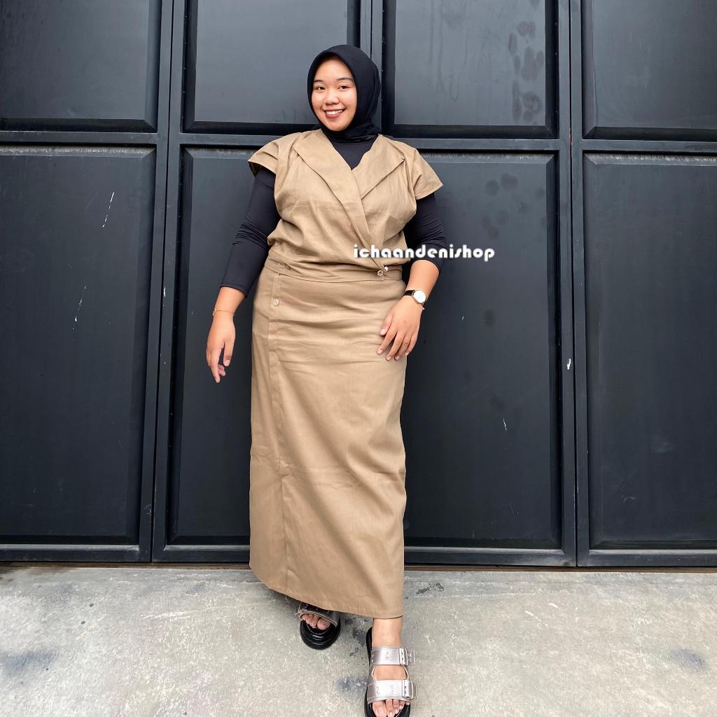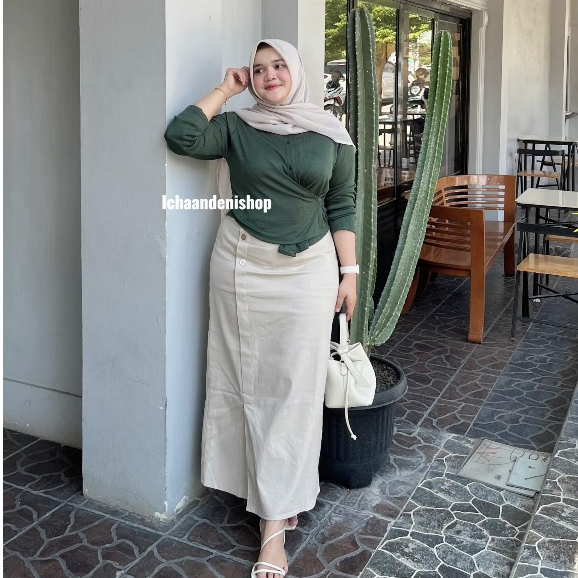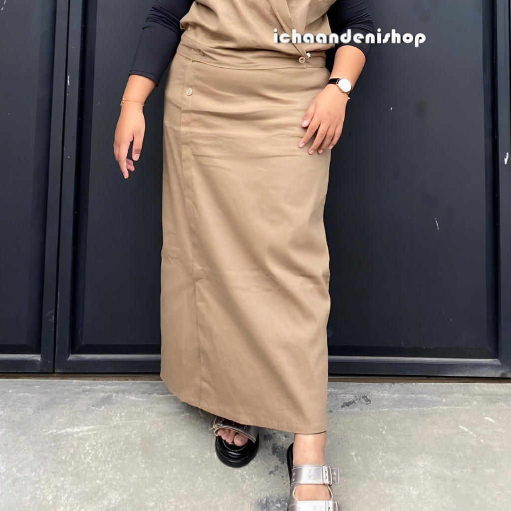 ICH - FREE BELT SIMA SKIRT BUTTON ROK JUMBO WANITA TWILL