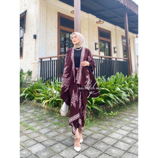 OUTFIT KONDANGAN SIMPEL ONE SET BATIK OUTER ROK LILIT KIMONO WANITA RAYON GLOYOR MOTIF ETNIQ OVERSIZE MODERN