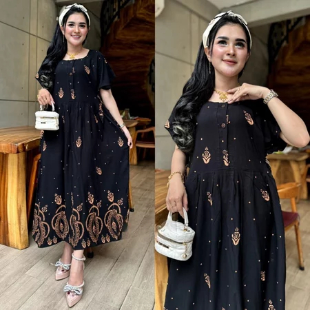 HAMZYU - DASTER JUMBO NYAMAN BUSUI BUMIL BAHAN KATUN RAYON MOTIF KEKINIAN TERBARU || DRESS CHIBI FUJI 2025