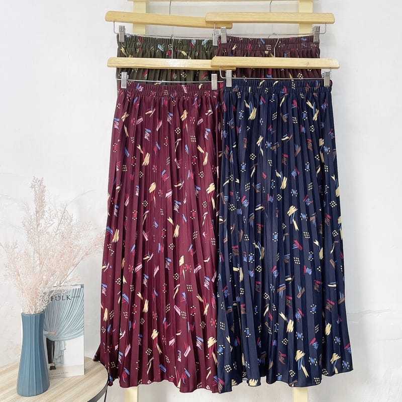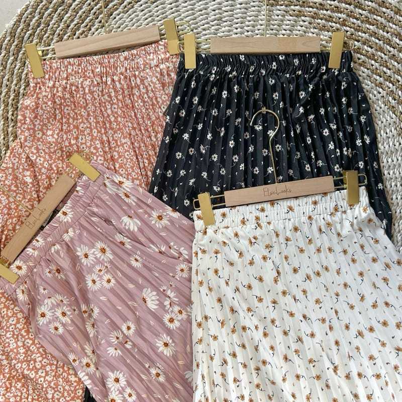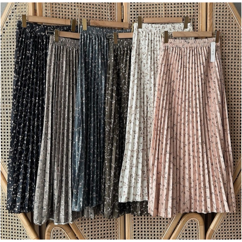 ROK PLISKET MOTIF BUNGA | ROK PANJANG WANITA KOREAN STYLE PREMIUM TERBARU