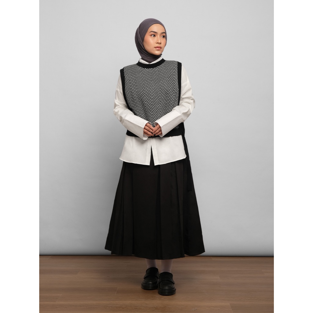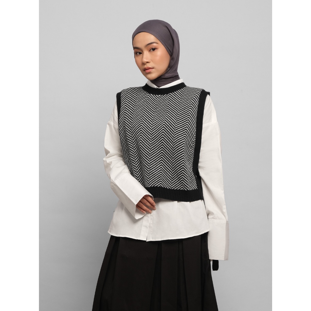 THENBLANK | KNIT KNOT VEST HERRINGBONE BAJU WANITA OUTER