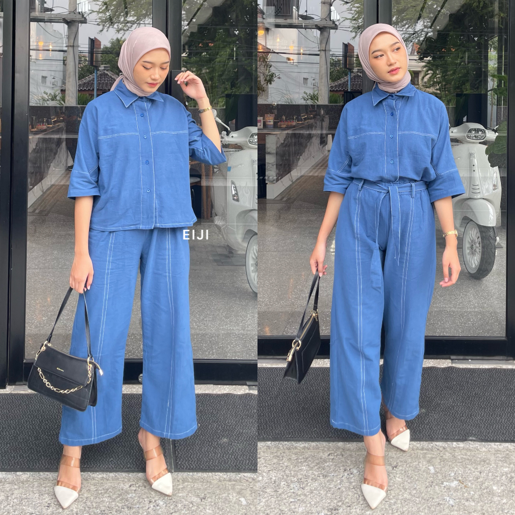 APRIL SET LINEN - ONE SET WANITA - CELANA KULOT - BAJU WANITA - BLOUSE KEMEJA WANITA LINEN - KULOT LINEN