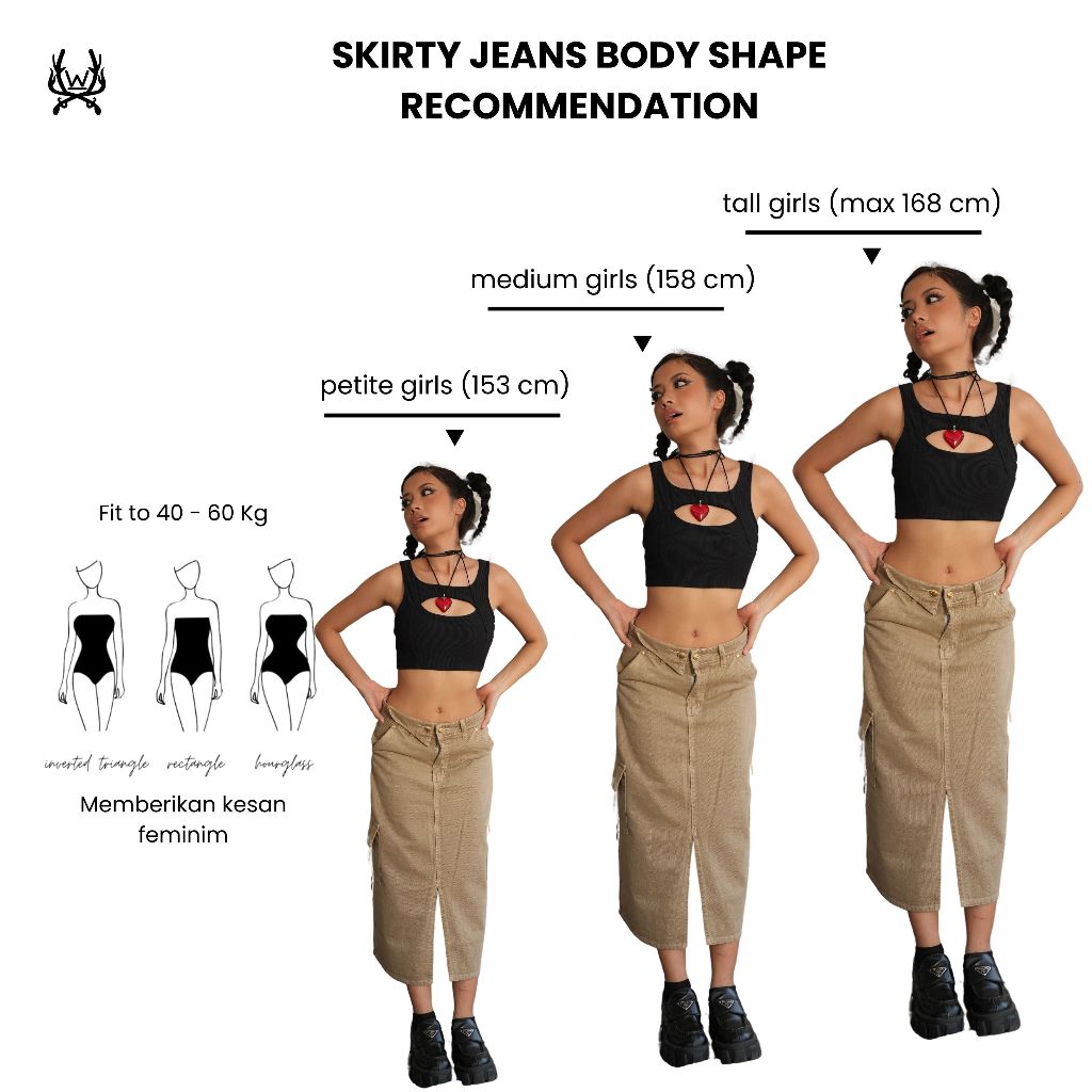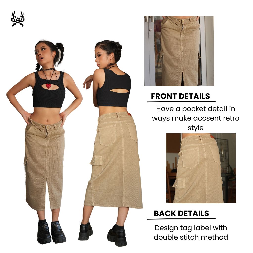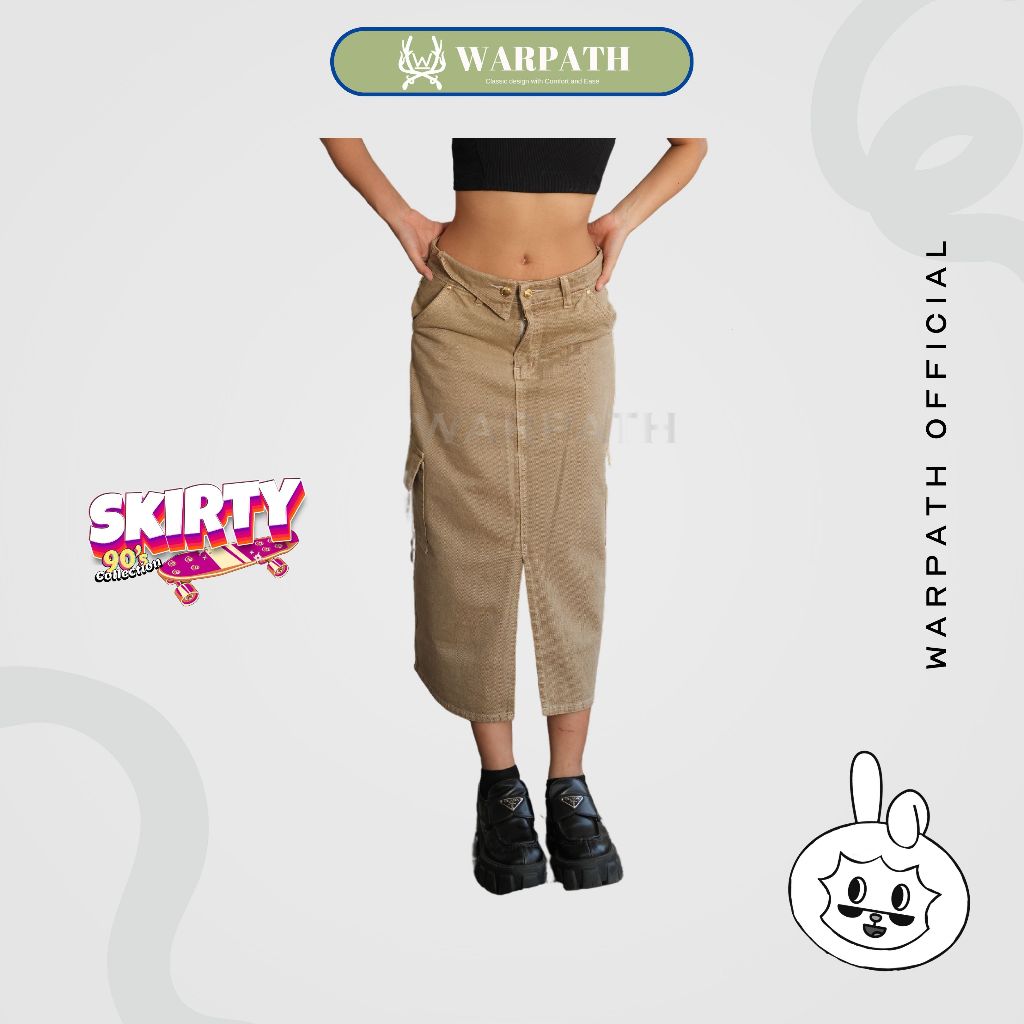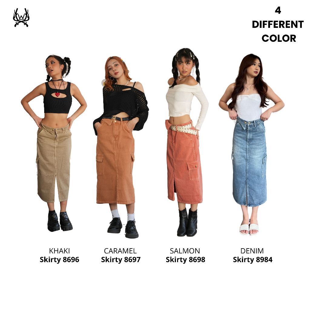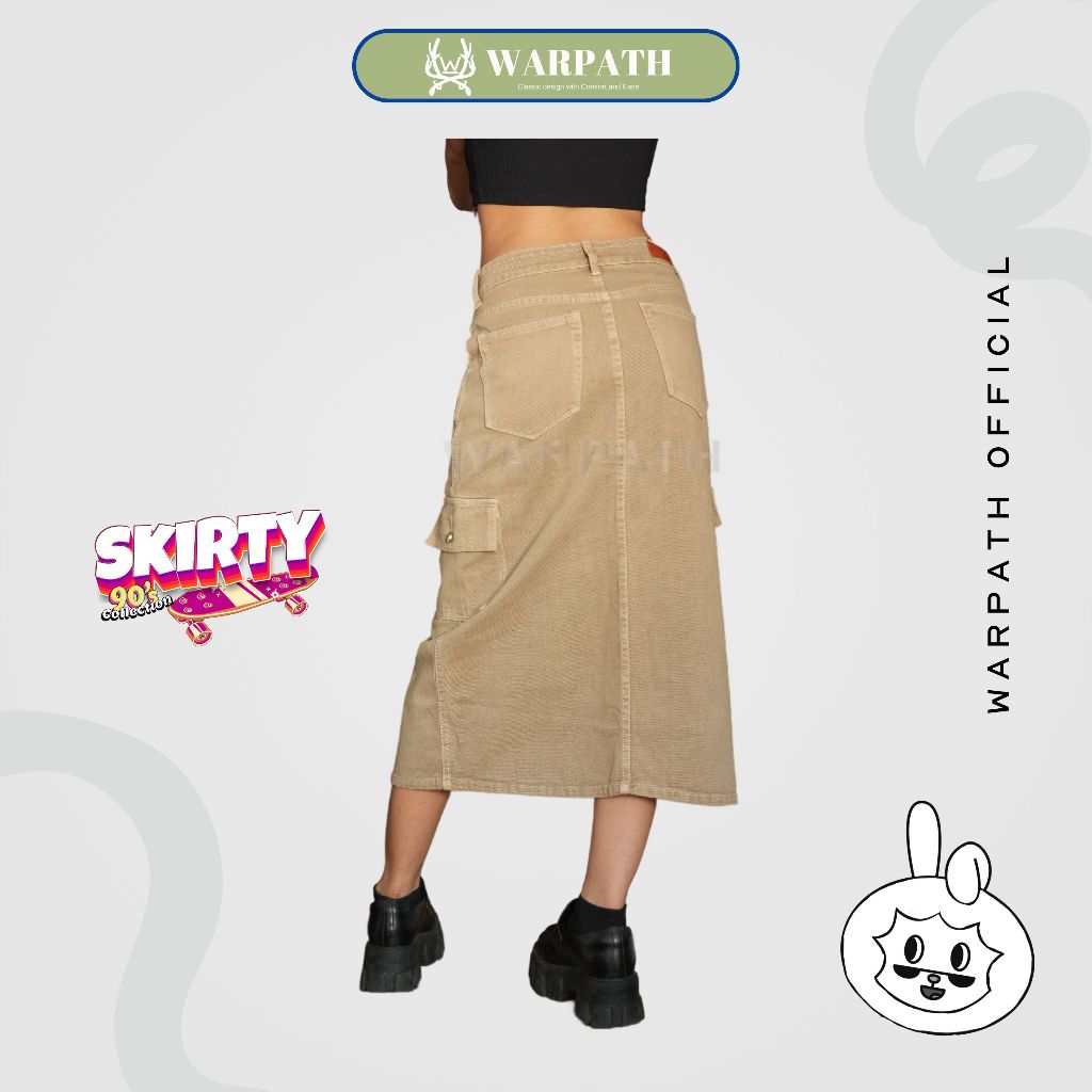 WARPATH - HIGHWAIST ROK JEANS SKIRTY 8696 MIDI SKIRT ROK DENIM CARGO WANITA KHAKI NON STRETCH