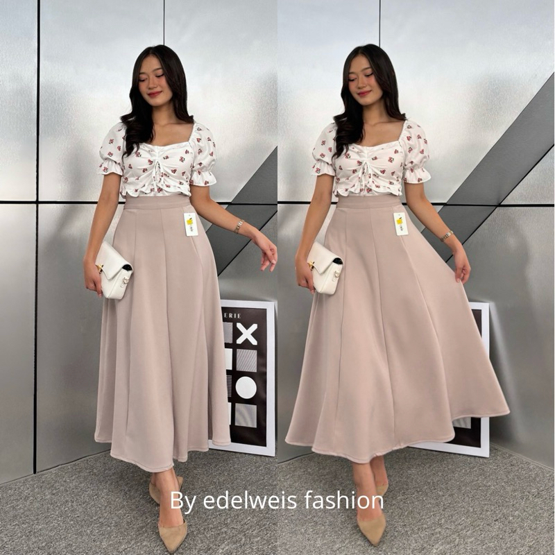 KAREEN SKIRT - KOREAN LOOSE MAXI SKIRT ROK WANITA ANTI KUSUT POLYESTER - ROK FLARE WANITA - ROK BASIC POLOS - MAXI SKIRT ROK PANJANG WANITA